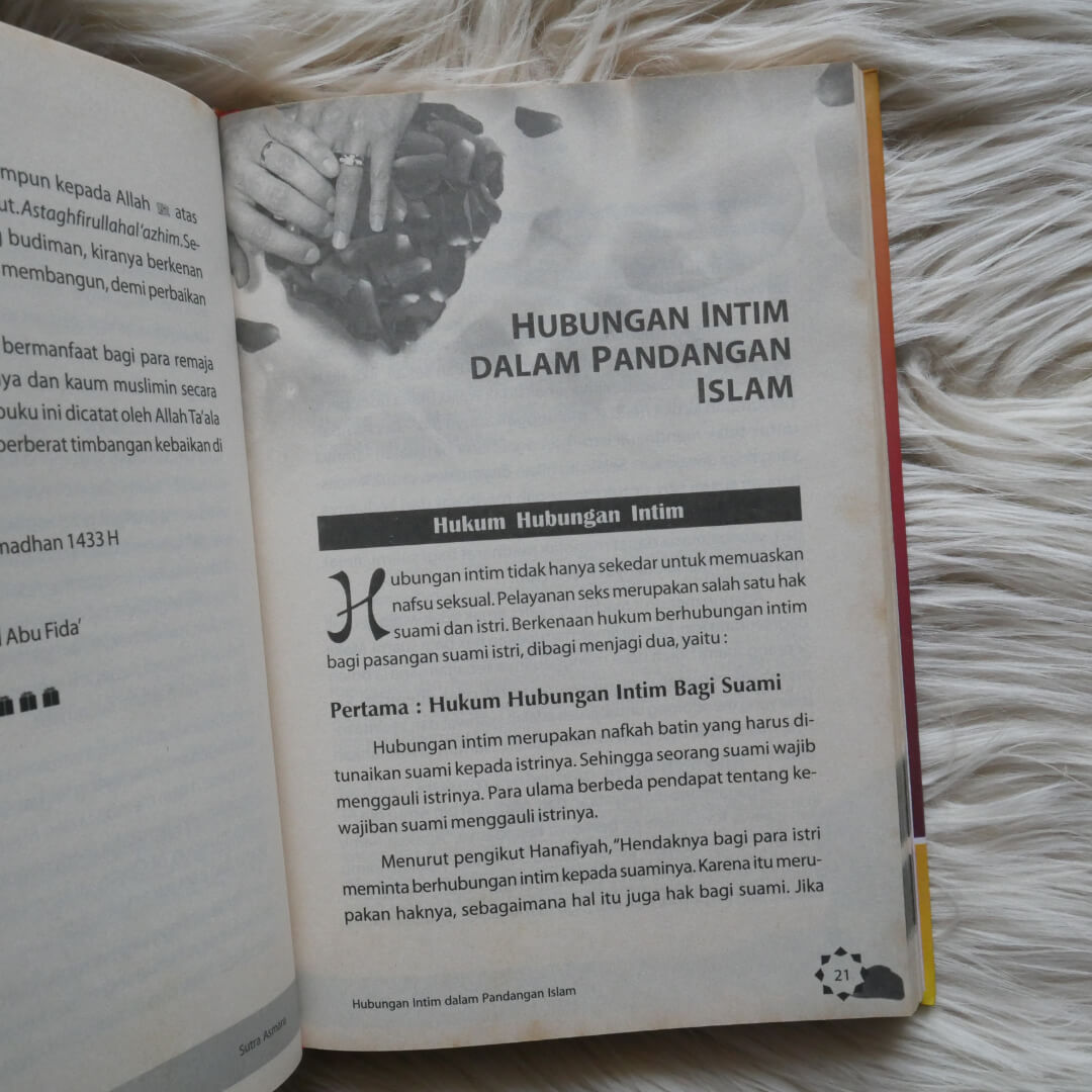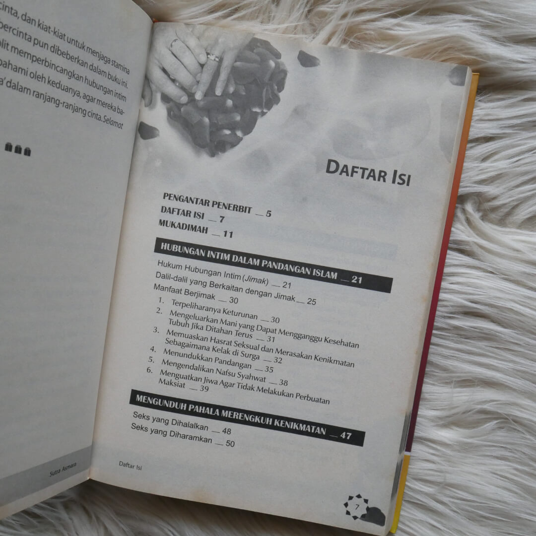 Islam adalah agama yang sempurna dan penuh hikmah. Di dalamnya berisi aturan yang indah, adil dan sangat memperhatikan perasaan sepasang pasutri. Bagaimana agar mereka berdua mampu merengkuh kenikmatan dalam cumbu asmaranya, dan bagaimana agar aktivitas jimak bisa pula membuahkan pahala di sisi Allah Ta’ala. Pembahasan hal tersebut secara gamblang akan dijelaskan dalam buku Sutra Asmara ini.