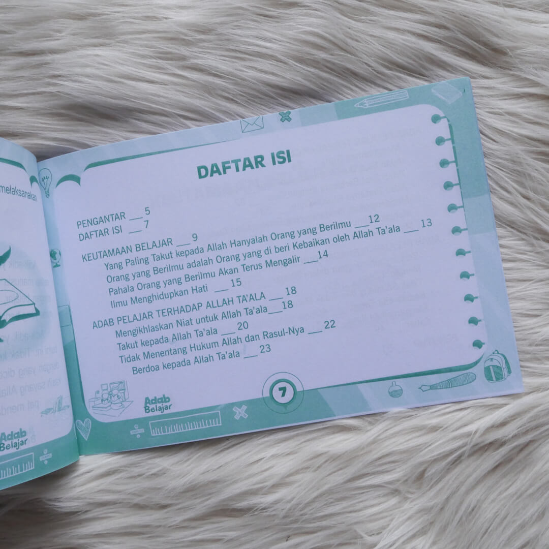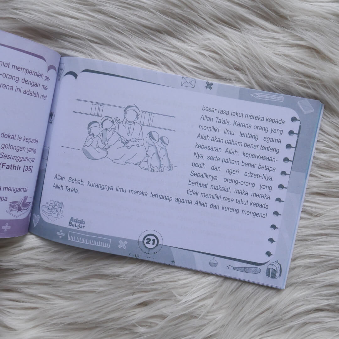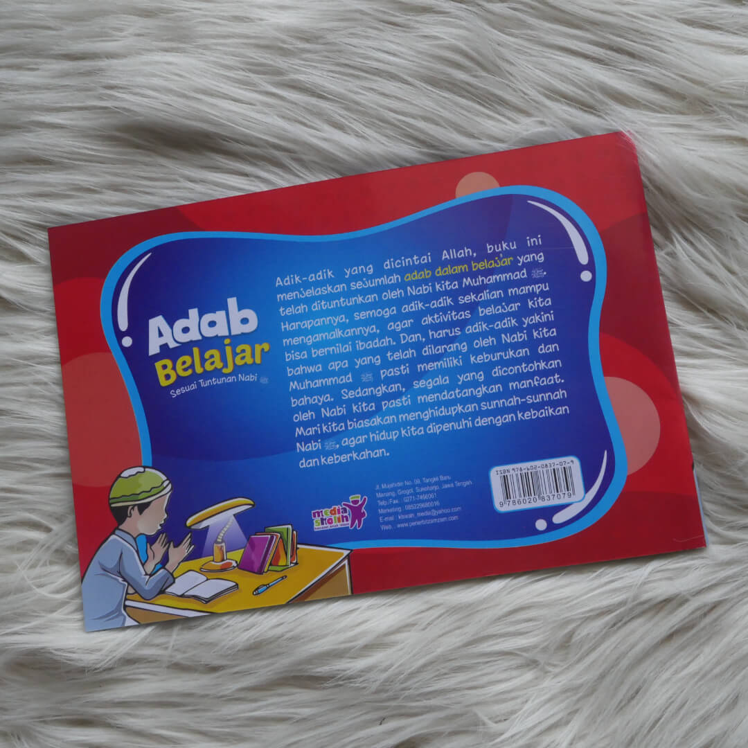 "Buku Adab Belajar Sesuai Tuntunan Nabi ini menjelaskan sejumlah adab dalam belajar dan mencari ilmu sesuai dengan yang telah dituntunkan Rasulullah Muhammad Shallallahu ‘Alaihi Wasallam. Disajikan dengan bahasa sederhana dan mudah dimengerti serta dilengkapi dengan gambar-gambar berwarna yang menarik, membuat adik-adik tidak akan bosan dalam membaca dan belajar. Buku yang cocok digunakan sebagai referensi pokok dalam pembahasan pendidikan anak muslim.