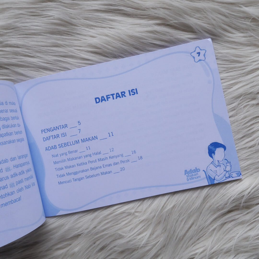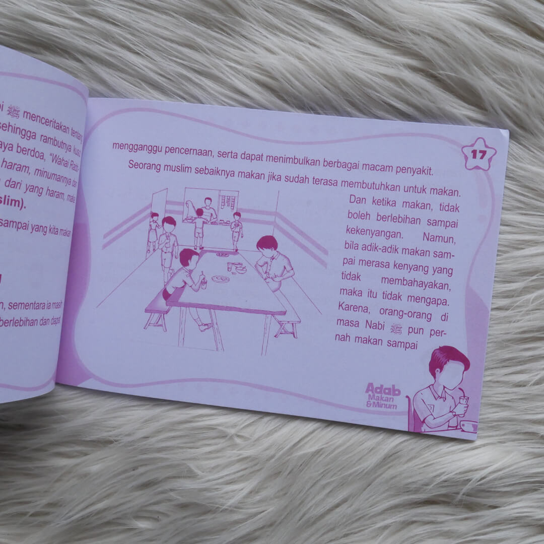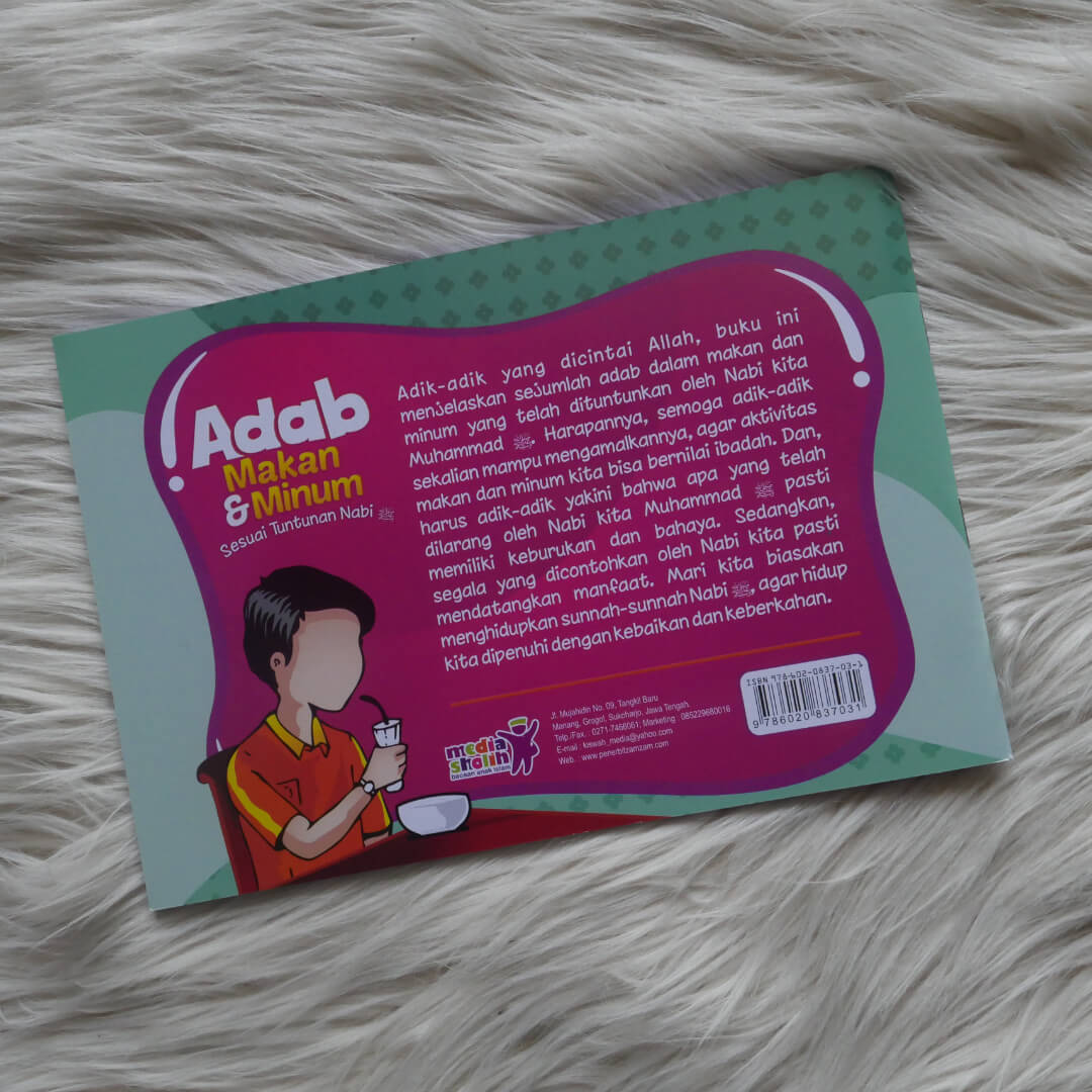 "Buku Adab Makan dan Minum Sesuai Tuntunan Nabi ini memaparkan sejumlah adab dalam makan dan minum yang telah dituntunkan oleh Rasulullah Muhammad Shallallahu ‘Alaihi Wasallam. Disajikan dengan bahasa sederhana dan mudah dipahami serta dilengkapi dengan gambar-gambar yang menarik, membuat adik-adik tidak bosan dalam membaca dan belajar. Buku yang cocok digunakan sebagai referensi pokok dalam pembahasan pendidikan anak muslim.