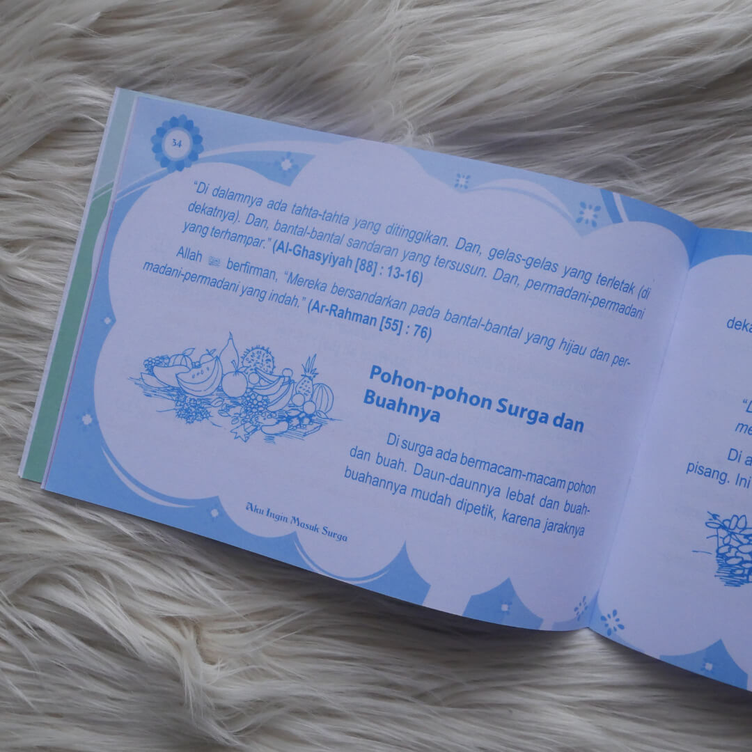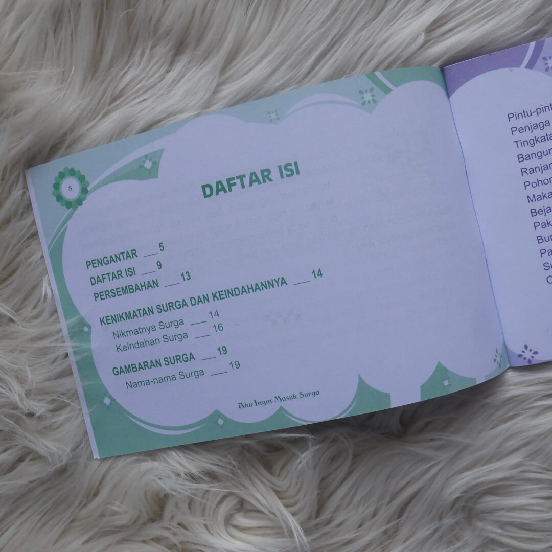 Buku yang biasanya dirancang untuk anak-anak dengan tujuan untuk mengajarkan nilai-nilai agama Islam, ibadah, dan akhlak mulia yang diharapkan dapat membawa seseorang kepada ridha Allah dan mendapatkan tempat di surga.