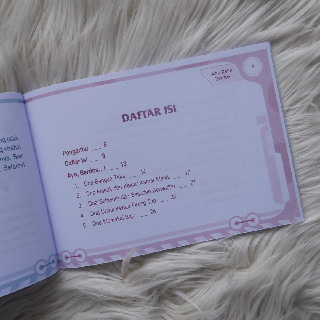 Buku yang dirancang untuk anak-anak dengan tujuan untuk mengajarkan pentingnya doa dalam kehidupan sehari-hari. Buku ini biasanya disusun dengan cara yang menarik dan mudah dipahami oleh anak-anak, seringkali disertai dengan ilustrasi warna-warni yang menarik.