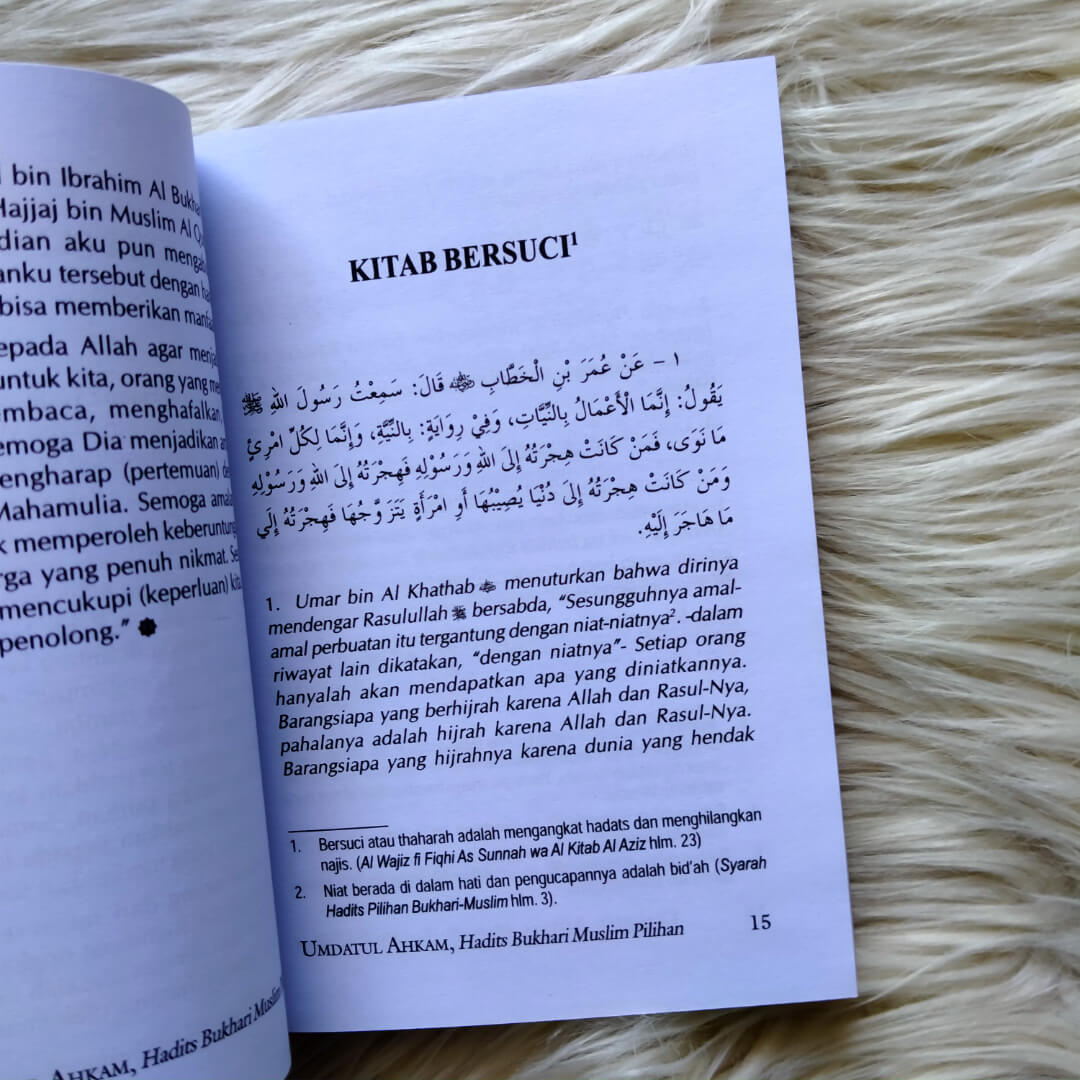 Catatan Khusus :Adapun buku Umdatul Ahkam, Matan-Terjemahan- kesimpulan yang di tangan Anda ini diterbitkan untuk membantu Anda dalam mengkaji, memahami dan menghafal kitab yang diberkahi tesebut, dengan beberapa keistimewaan :