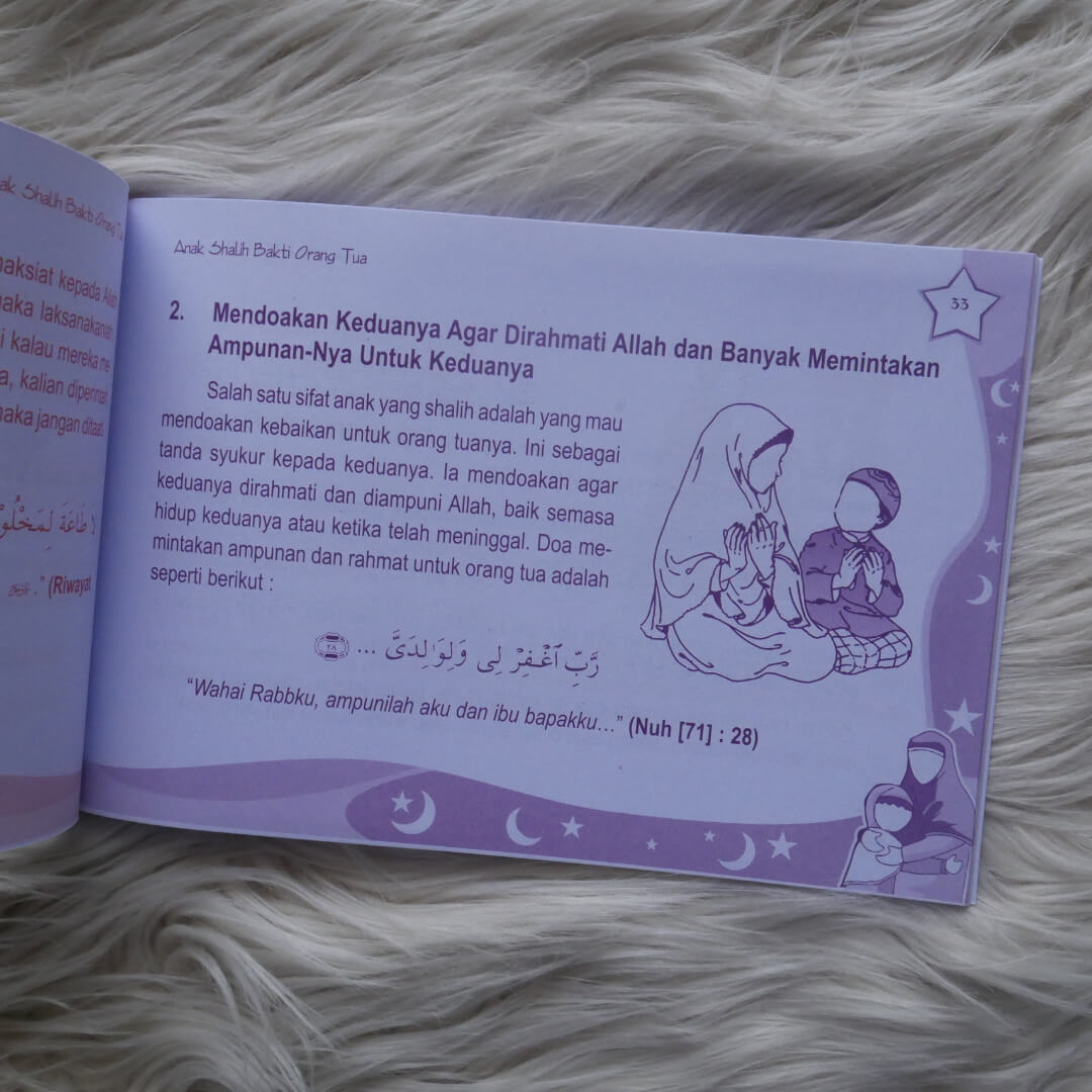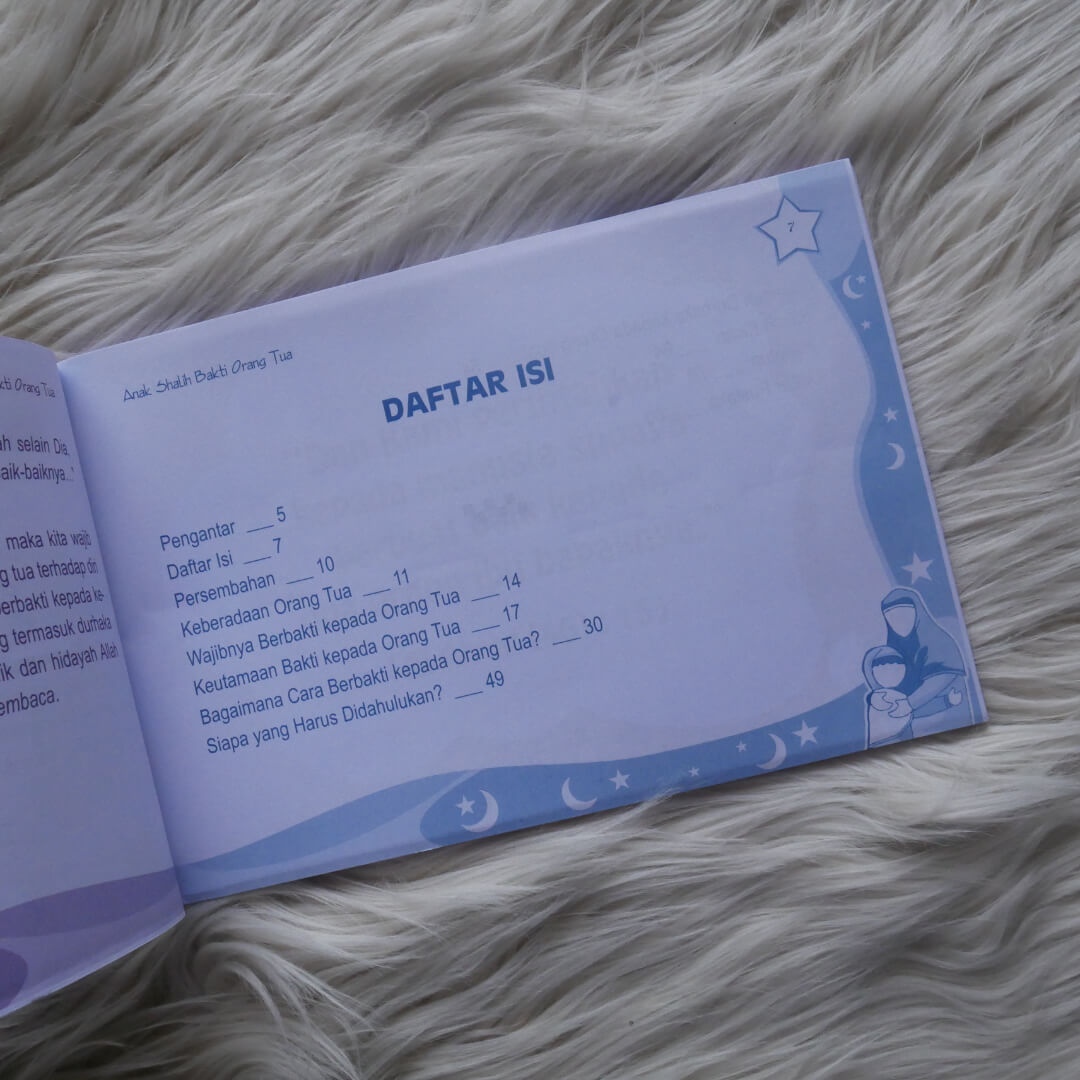 BukuAnak Shalih Bakti Orang Tuainimenjelaskan kepada kalian tentang keutamaan dancaraberbakti kepada kedua orang tua. Juga tentang bahayanya berbuat durhaka kepada kedua orang tua.