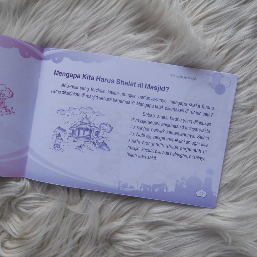 Kita sebagai seorang muslim rajin ke masjid. Karena rajin ke masjid dan menunaikan shalat berjama'ah di masjid memilikin keutamaan yang sangat besar, dan mendatangkan pahala yang berlimpah. Buku ini menjelaskan kepada adik-adik tentang keutamaan sholat berjama'ah di masjid, disertai dengan tata cara dan adab-adab yang dilakukan saat berada di masjid.