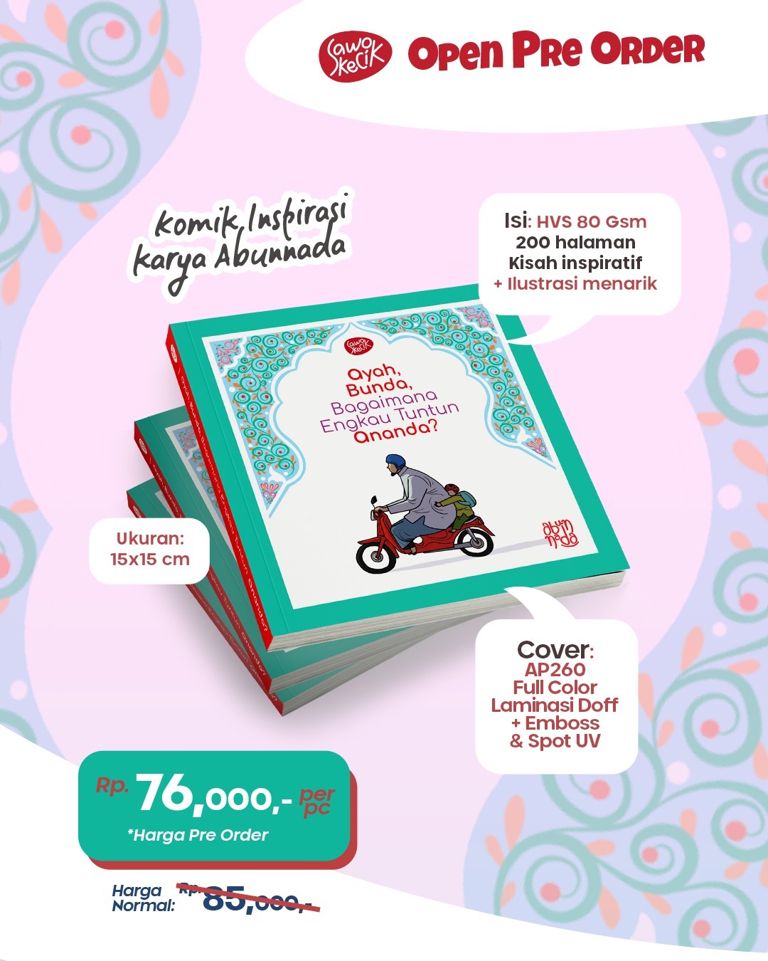 Komik inpirasi terbaru ini berisi kompilasi konten cerita singkat yang bisa menjadi bahan renungan. Bertemakan parenting sebagaimana tuntunan Rasul shallallahu'alaihiwasallam. Juga tauhid dalam kehidupan sehari-hari.