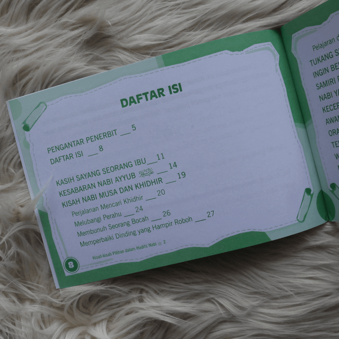 Buku ini berjudul Buku Anak Kisah-Kisah Pilihan Dalam Hadits Nabi , Buku ini berisi kisah-kisah pilihan dari Hadits-Hadits Rasulullah Shallallaahu Alaihi Wa Sallam.