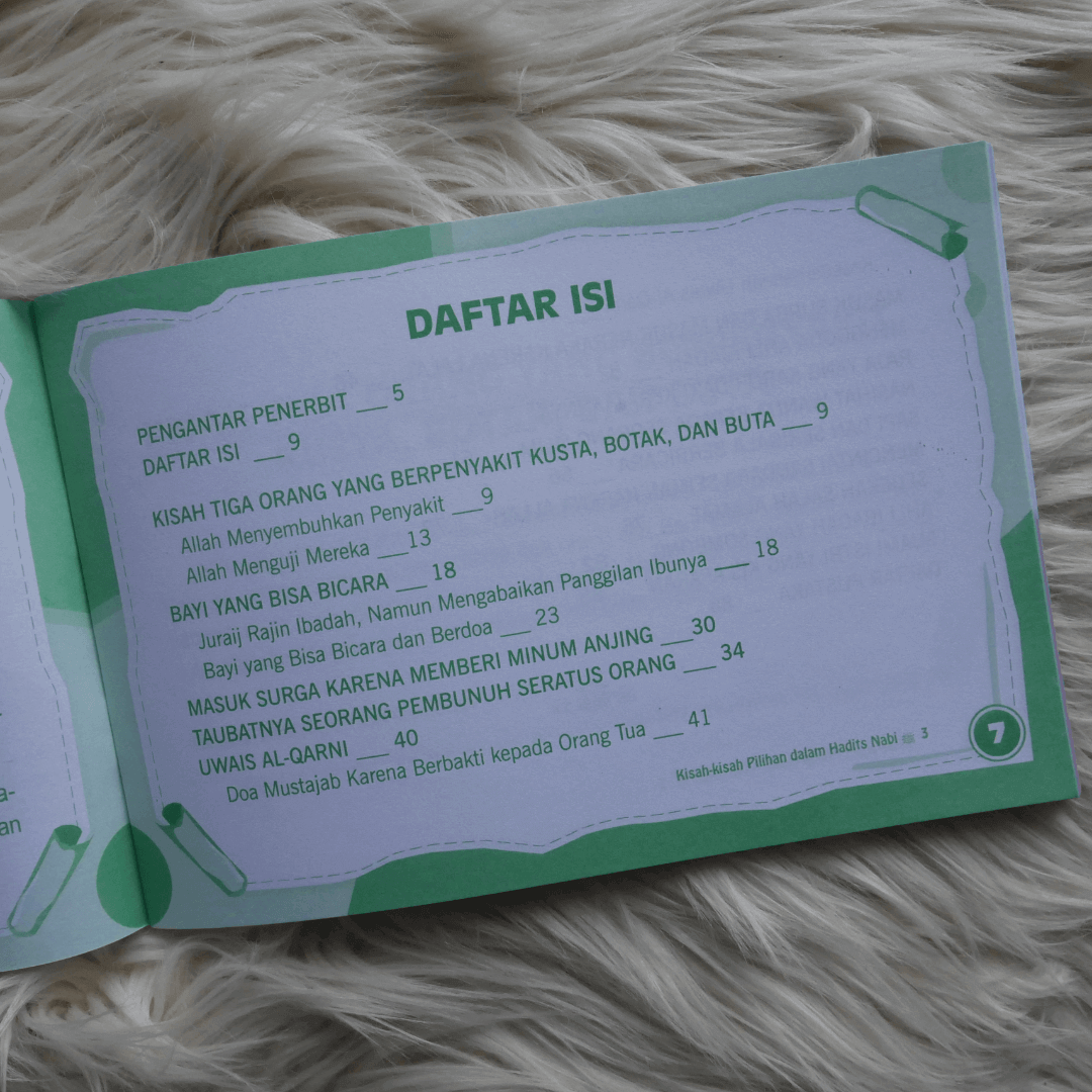 Buku ini berjudul Buku Anak Kisah-Kisah Pilihan Dalam Hadits Nabi , Buku ini berisi kisah-kisah pilihan dari Hadits-Hadits Rasulullah Shallallaahu Alaihi Wa Sallam.