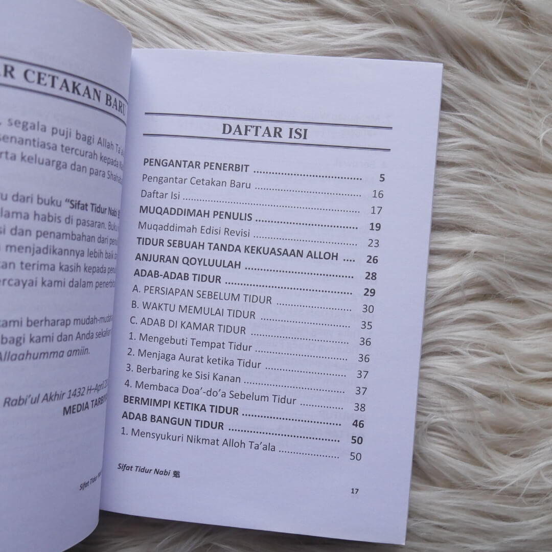Penulis menyajikannya secara sistematis sehingga mudah dibaca dan diamalkan, dengan harapan buku Sifat Tidur Nabi Shalallahu ‘alaihi wa Sallam ini dapat menjadi rujukan dalam meneladani sifat tidur Nabi Shalallahu alaihi wa Sallam. Dan semakin mendorong kaum muslimin untuk ber ittiba’ dan meneladani Rasulullah Shalallahu ‘alaihi wa Sallam dalam setiap aktivitas kehidupan sehari-harinya.