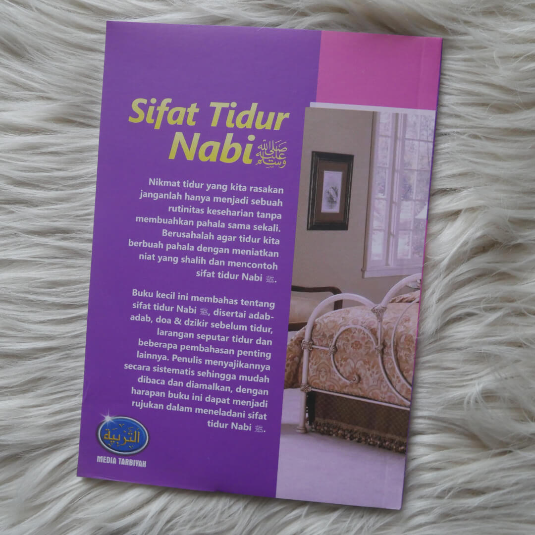 "Buku Sifat Tidur Nabi Shalallahu ‘alaihi wa Sallam nan kecil ini membahas tentang tidur Nabi Shalallahualaihiwassalam, adab-adabnya, doa & dzikir sebelum tidur, larangan seputar tidur dan beberapa pembahasan penting lainnya. Siapa saja yang memperhatikan cara tidur dan aktivitas beliau, pasti akan mendapatkannya sebagai cara tidur terbaik dan paling bermanfaat untuk tubuh, untuk seluruh organ badan dan stamina.