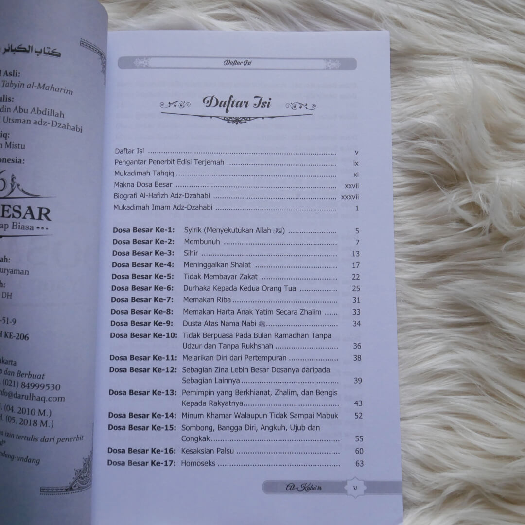 Kitab al-Kaba`ir (dosa-dosa besar) karya Imam al-Hafizh adz-Dzahabi telah diterbitkan oleh beberapa penerbit. Namun ada beberapa cetakan penebit ternyata menambah-nambahi naskah asli kitab Al-Kaba`ir yang telah ditulis oleh Imam adz-Dzahabi dengan hadits-hadits dha’if bahkan maudhu’, serta disajikan pula kisah-kisah yang tak jelas asal-usulnya. Oleh karena, penerbit Darul Haq menuliskan buku terjemahan dari naskah asli kitab Al-Kaba’ir ini yang diberi judul buku 76 Dosa Besar yang Dianggap Biasa.