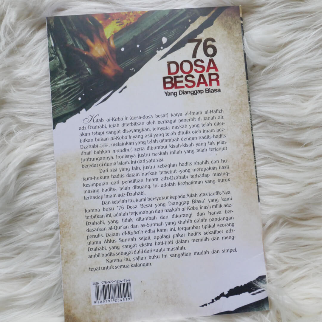 "Buku 76 Dosa Besar yang Dianggap Biasa ini adalah terjemah dari kitab Al-Kaba’ir karya pakar hadits Imam Adz-Dzahabi. Beliau dikenal sangat hati-hati dalam memilih dan mengambil hadits sebagai dalil dari suatu masalah. Kelebihan buku ini diantaranya disajikan dengan mudah dan sederhana sehingga cocok dibaca untuk semua kalangan. Buku yang tidak boleh dilewatkan untuk mempelajari dosa-dosa menurut syariat islam.