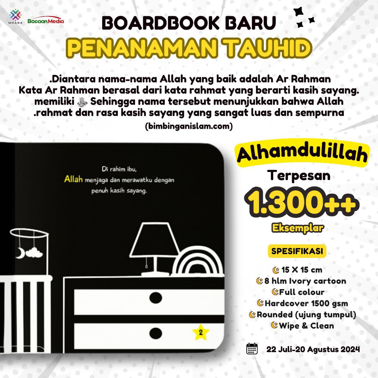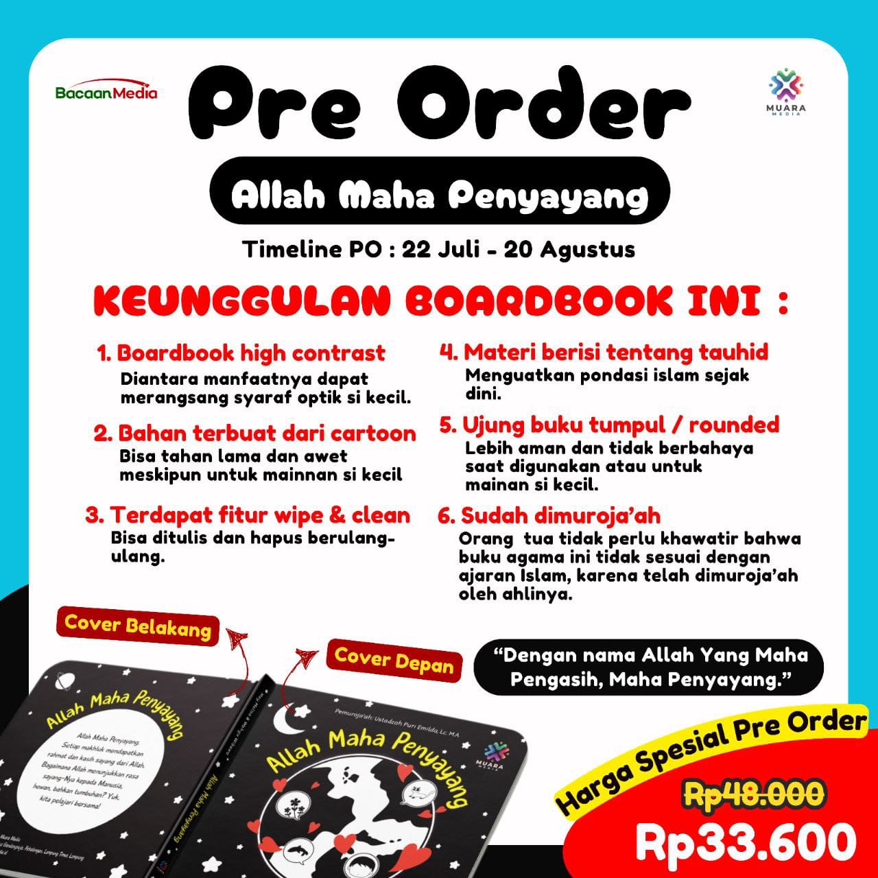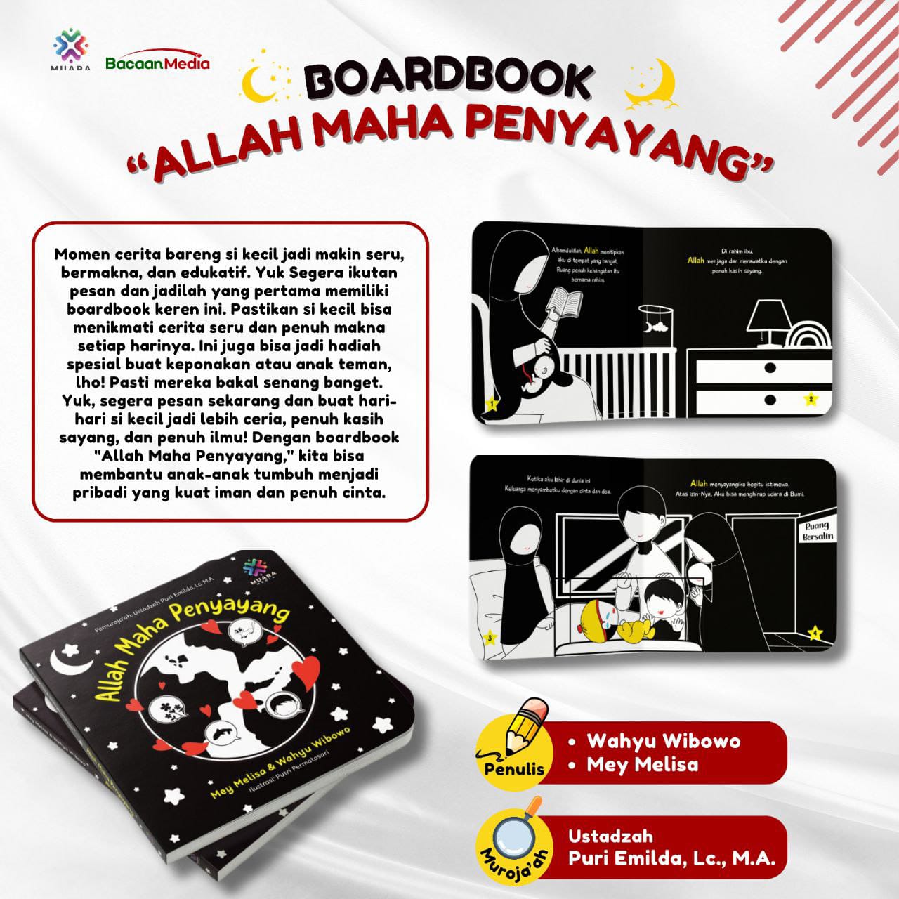 Dengan boardbook "Allah Maha Penyayang" dari Muara Media, momen cerita bareng si kecil jadi makin seru dan berkesan. Kita tahu betapa pentingnya momen berharga bersama buah hati, kan? So, jangan sampai ketinggalan open Pre-Order nya ya❗