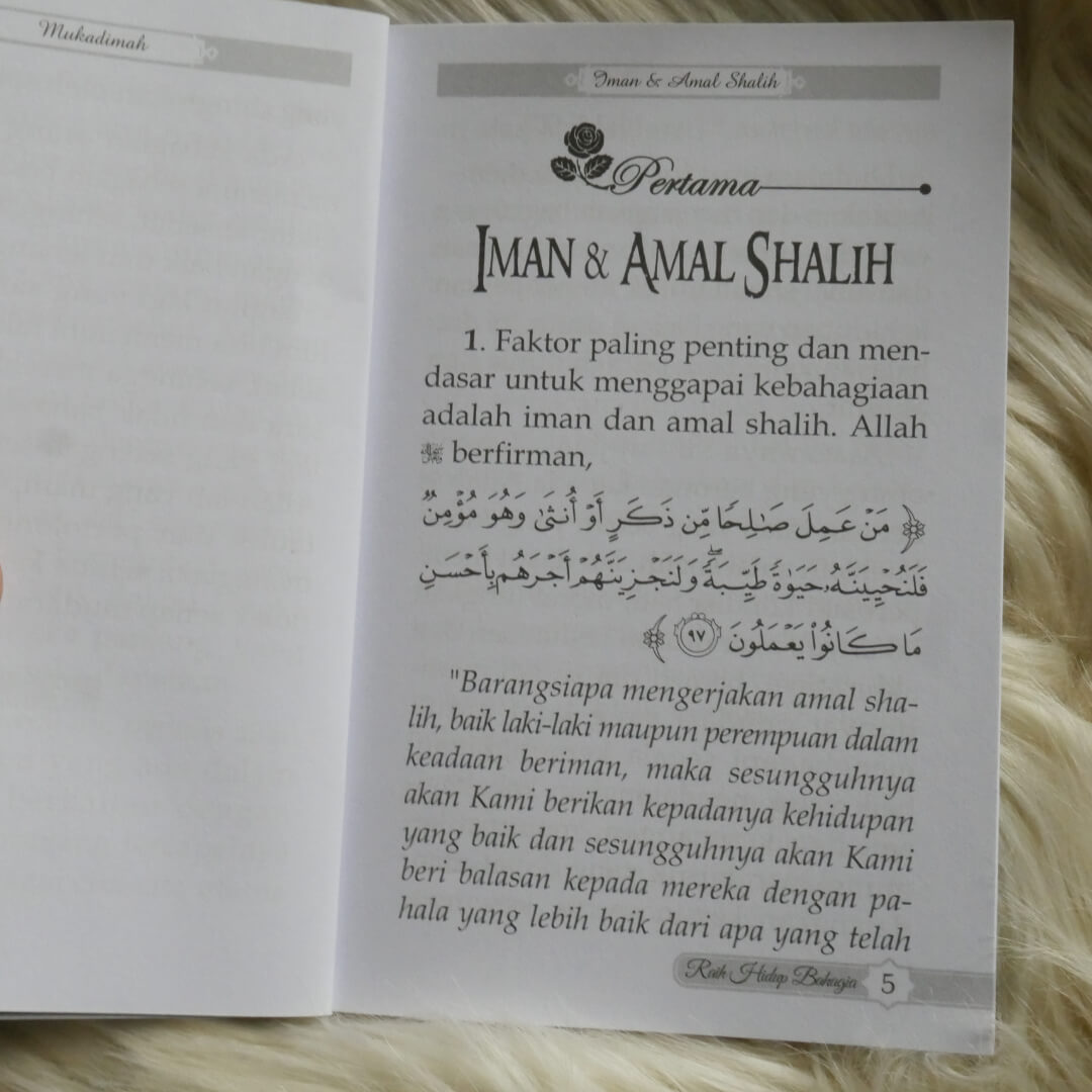 "Hidup bahagia adalah dambaaan semua orang. Mereka akan berusaha meraihnya pada setiap sisi ruang dan waktu. Sebagian mereka benar-benar mendapatkannya, namun tidak sedikit yang terperdaya oleh rasa gelisah, putus asa, galau, dan sedih hati, hingga pada akhirnya sudah menjadi bagian dari hidupnya.
