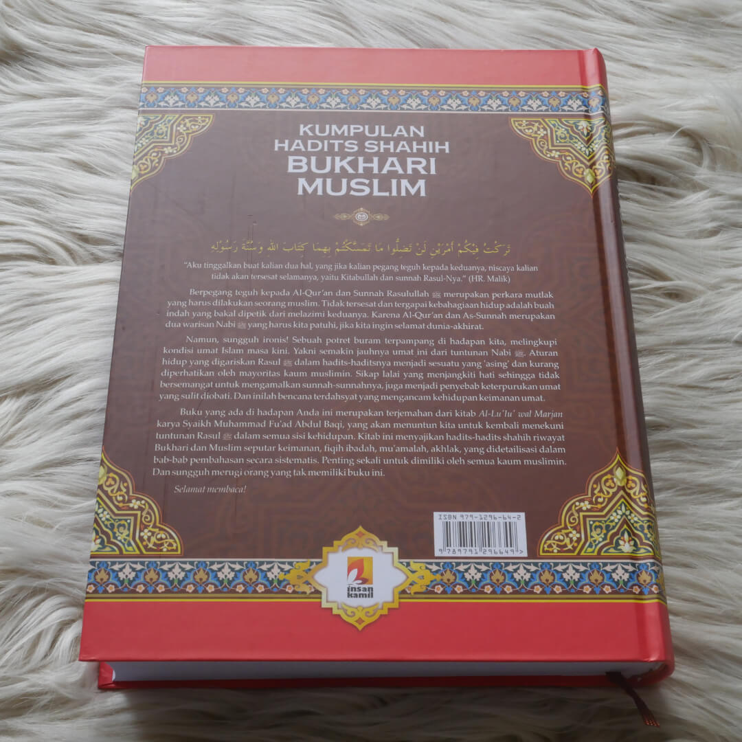 Buku Kumpulan Hadits Shahih Bukhari Muslim ini adalah terjemahan dari kitab Al-Lu’lu’ wal Marjan karya Syaikh Muhammad Fu’ad Abdul Baqi, yang akan menuntun kita untuk senantiasa mengikuti tuntunan Rasulullah Shalallahu ‘alaihi wa Sallam dalam semua sisi kehidupan.
