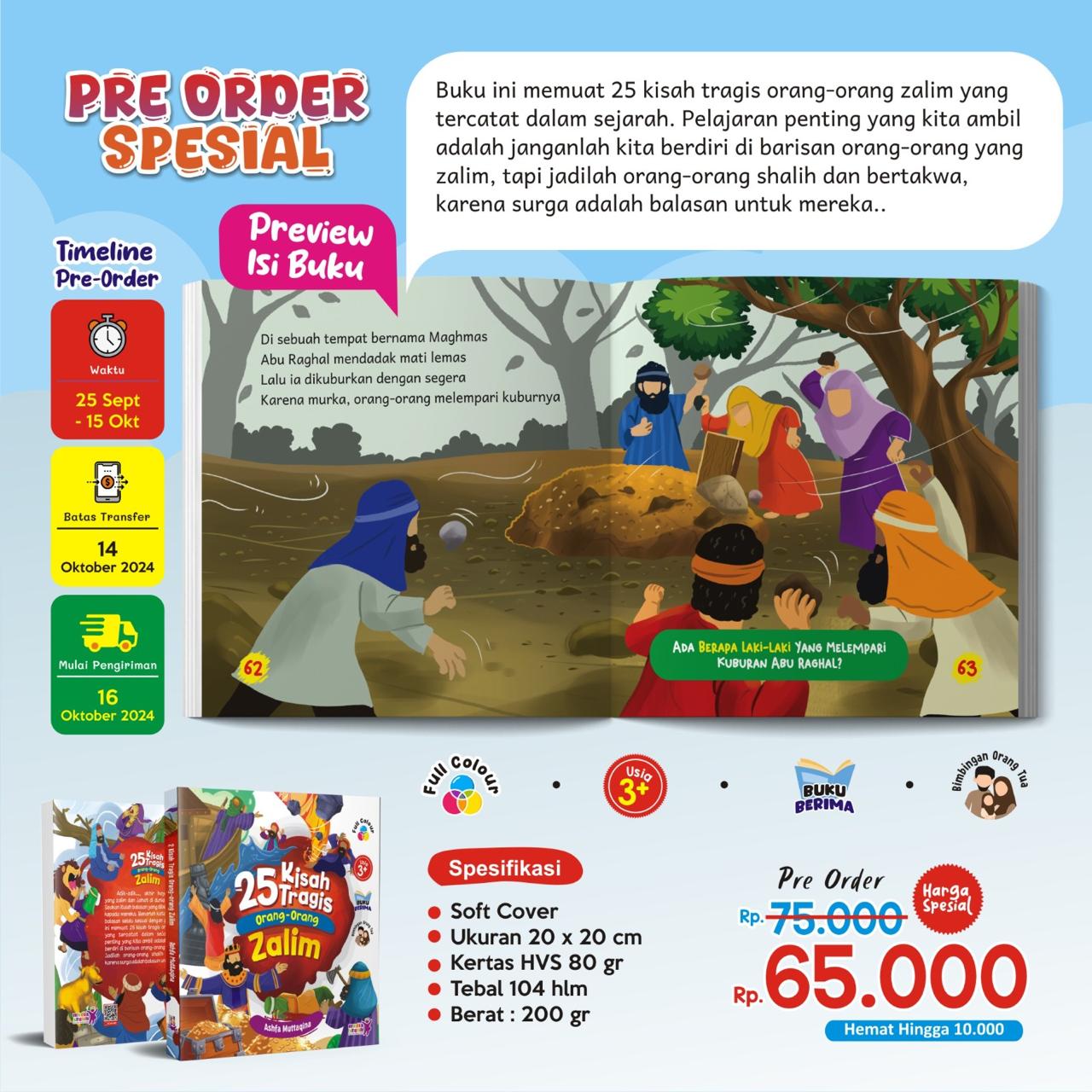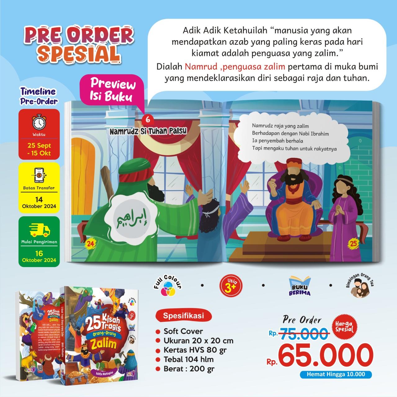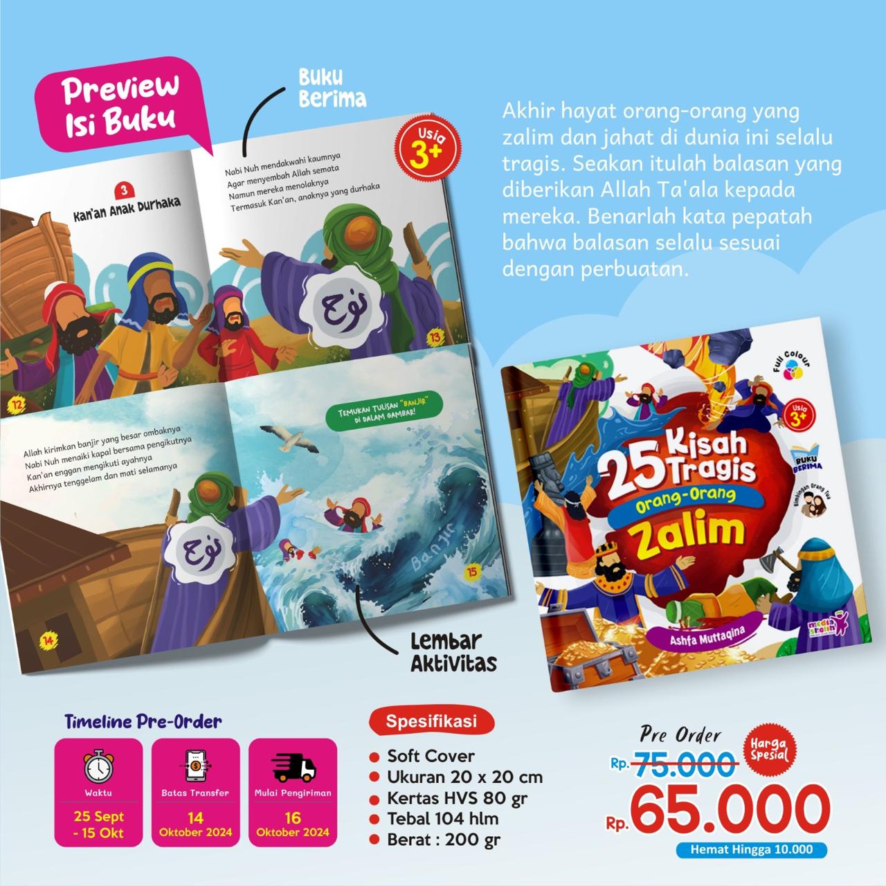 Buku ini memuat 25 kisah tragis orang-orang zalim yang tercatat dalam sejarah. Pelajaran penting yang kita ambil adalah janganlah kita berdiri di barisan orang-orang yang zalim, tapi jadilah orang-orang shalih dan bertakwa, karena surga adalah balasan untuk mereka...!