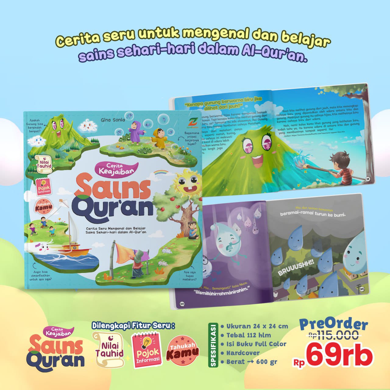 Eits! Tak perlu risau lagi, untuk memenuhi kebutuhan si kecil agar tumbuh rasa kagum dan cintanya pada Allah, kami hadirkan “CERITA KEAJAIBAN SAINS QUR'AN” ⛈