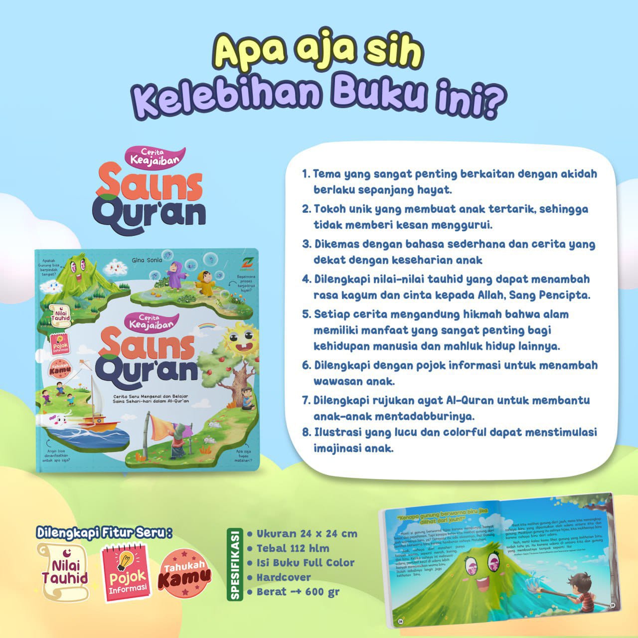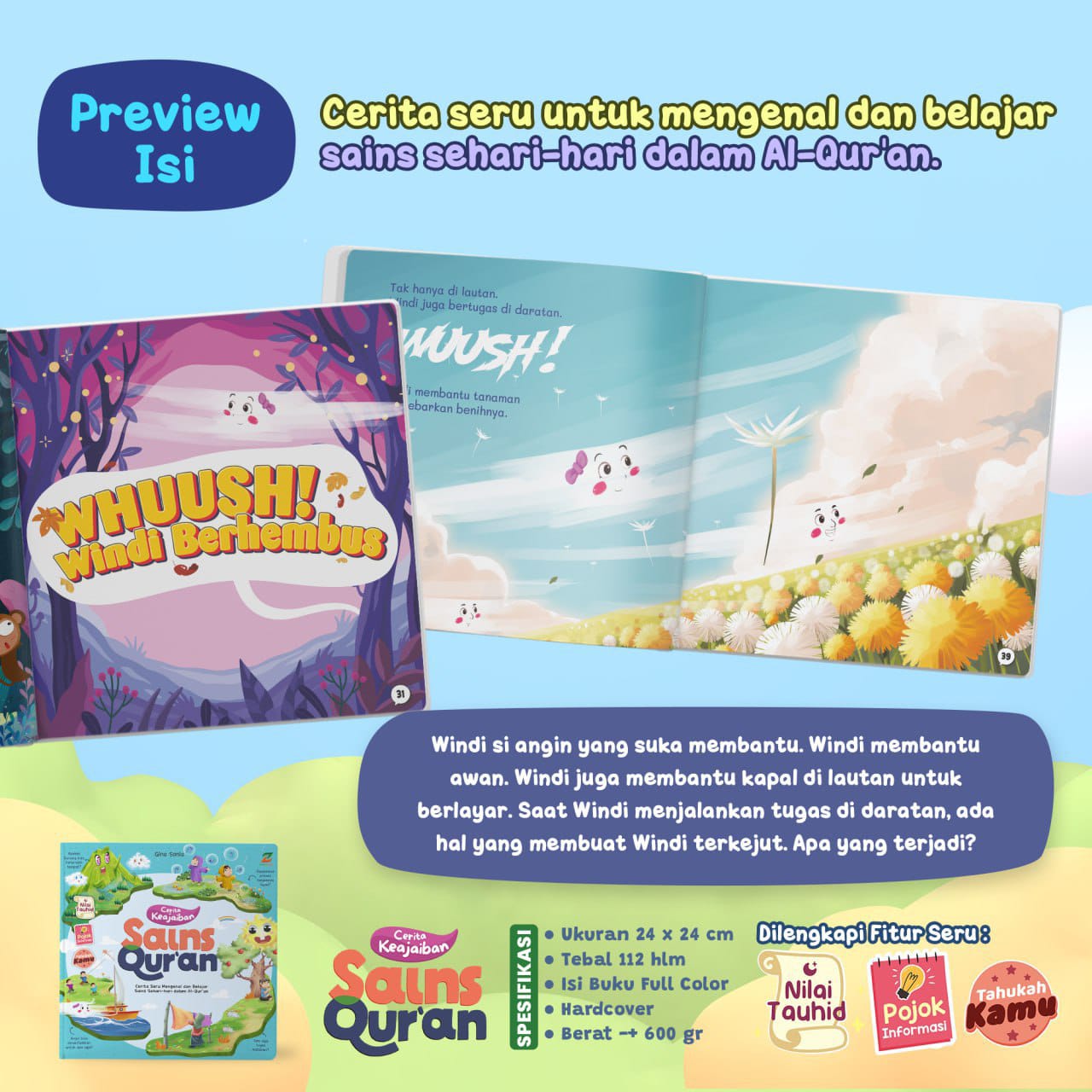 Buku cerita yang dikemas dalam bentuk hardcover, berisi 4 cerita tentang peristiwa alam yang terjadi dalam kehidupan yaitu angin, air, gunung, dan matahari. Dilengkapi berbagai fitur menarik, seperti: Nilai Tauhid, Pojok Informasi, dan Tahukah Kamu. Semakin lengkap lagi pengetahuan si kecil dengan buku ini ????