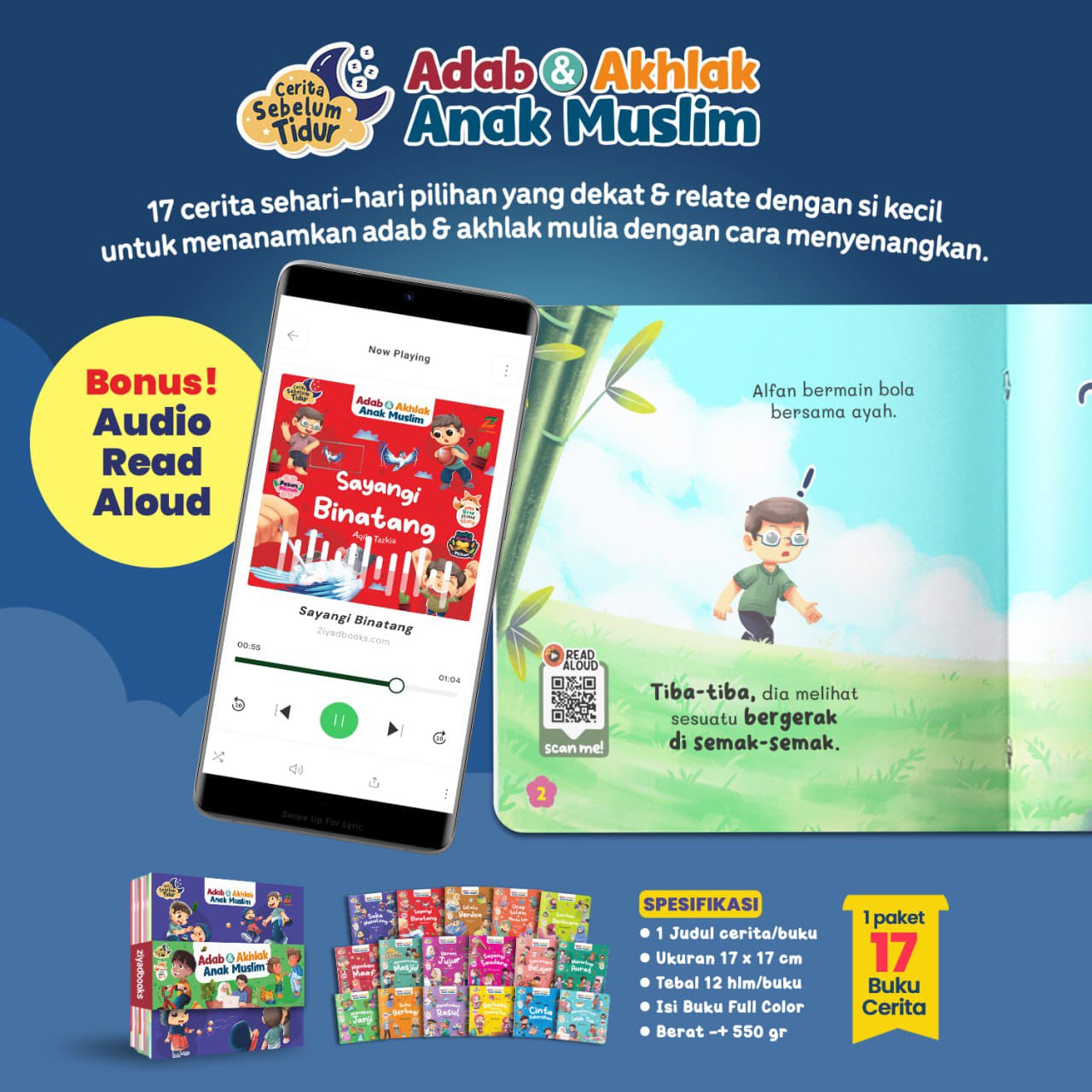 ???? Fitur scan barcode read aloud story, pesan hikmah, dan ayat/hadis pilihan di setiap buku.