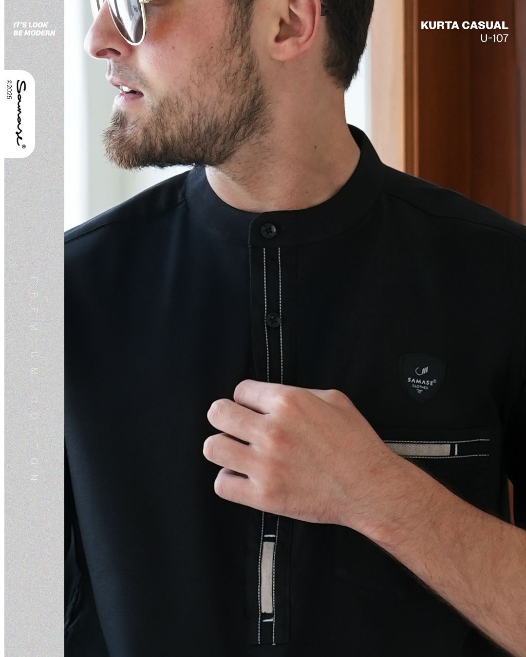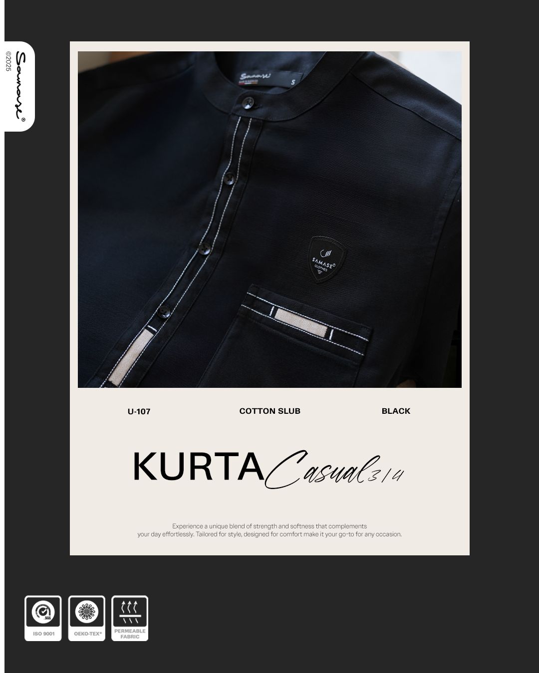 Samase Kurta Casual U107 - Cotton Slub Black