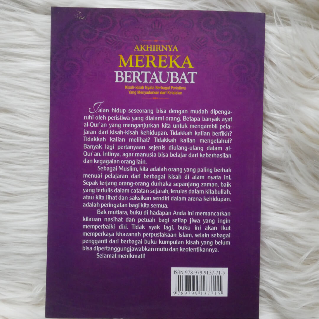 "Buku Akhirnya Mereka Bertaubat ini menyajikan kisah orang yang bertaubat dan hijrah kepada jalan kebenaran yaitu islam diatas tauhid dan ketaatan kepada Allah ta’ala. Buku ini sangat layak dijadikan bacaan wajib untuk melembutkan hati kita dan menginspirasi kita untuk menjadi hamba yang pandai bersyukur dan gemar bertaubat.