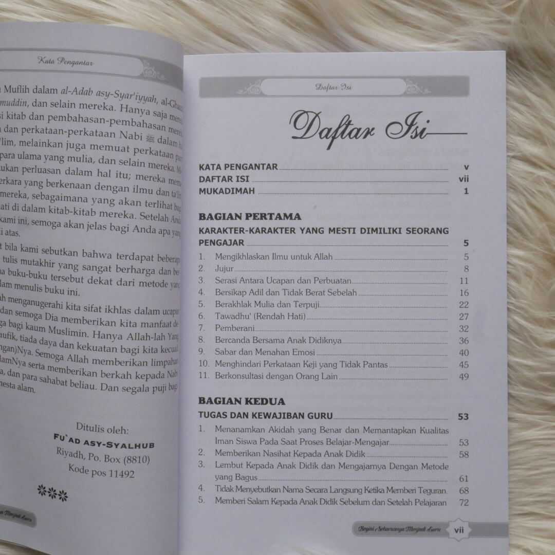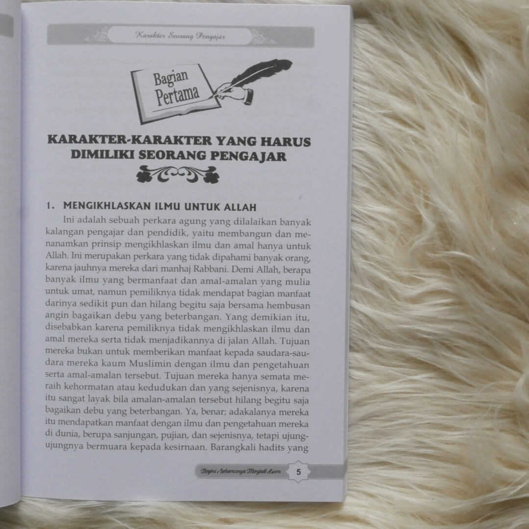 Sebagai seorang guru, tentu harus menyadari bahwa dia akan dimintai pertanggungjawabannya di hadapan Allah nanti di akhirat berkaitan dengan anak didiknya. Maka hendaknya merasa takut kepada Allah dan mengusahakan berbagai cara semaksimal mungkin untuk mendidik putra-putri kaum Muslimin. Ajarkanlah mereka perintah-perintah Allah dan jangan sampai mengarahkan mereka ke dalam hal yang dilarang oleh Allah seperti yang disampaikan dalam buku Begini Seharusnya Menjadi Guru ini. Oleh karena itu setiap guru dan pengajar mau tidak mau harus mempelajari ilmu agama dan juga metode Nabi Shallallahu ‘alaihi wasallam dalam mendidik dan mengajar.