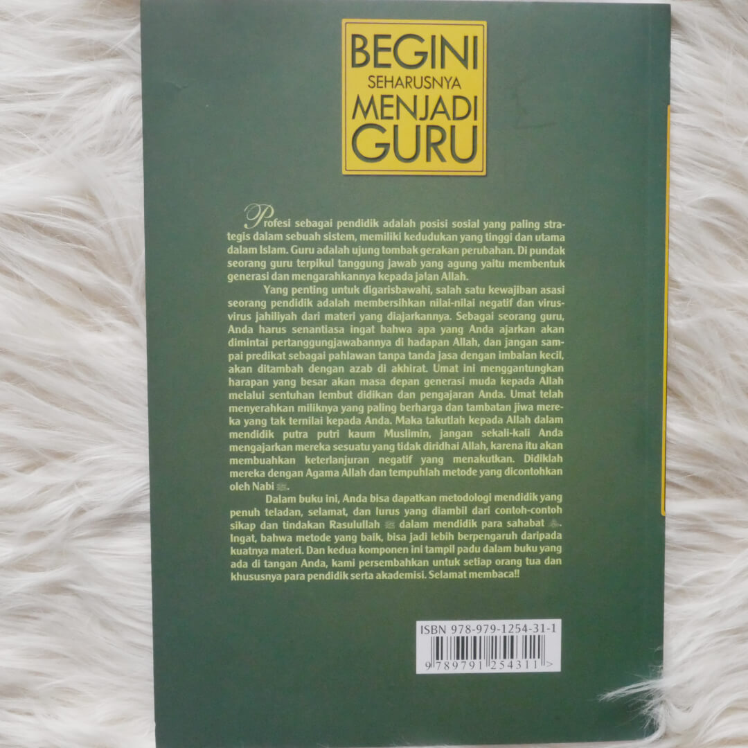 "Buku Begini Seharusnya Menjadi Guru ini menguraikan metode pendidikan anak yang lurus dan penuh keteladanan yang diambilkan dari metode Rasulullah Shallallahu ‘Alaihi wa Sallam dalam mendidik para sahabat Radhiyallahu ‘anhuma. Selain menggunakan metode terbaik, beliau juga membimbing dengan materi terbaik dari wahyu ilahi, yaitu Al-Qur’an dan Sunnah. Dengan metode dan materi terbaik, pendidikan yang ditanamkan akan berhasil dan sukses. Jadikan buku ini pedoman dalam mencari referensi tentang pendidikan anak metode Nabi.