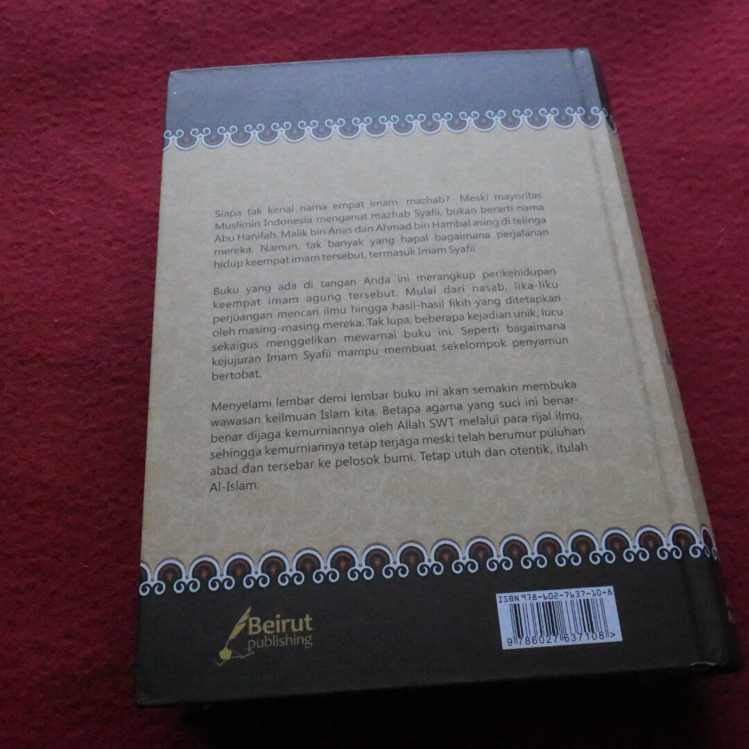 Buku Biografi Empat Imam Mazhab ini menjelaskan kisah hidup 4 ulama madzhab diantaranya Imam Syafii, Imam Hanafi, Imam Ahmad dan Imam Malik rahimahumullah. Buku ini akan mengupas sisi kehidupan mereka mulai dari nasab, lika-liku perjuangan mencari ilmu hingga hasil-hasil fikih yang dimiliki oleh masing-masing mereka. Tak lupa kejadian-kejadian luar biasa yang menunjukkan kecerdasan mereka terhadap ilmu fiqih islam. Buku ini layak dijadikan referensi untuk mempelajari perjalanan hidup 4 ulama fiqih besar yang pernah dimiliki islam.