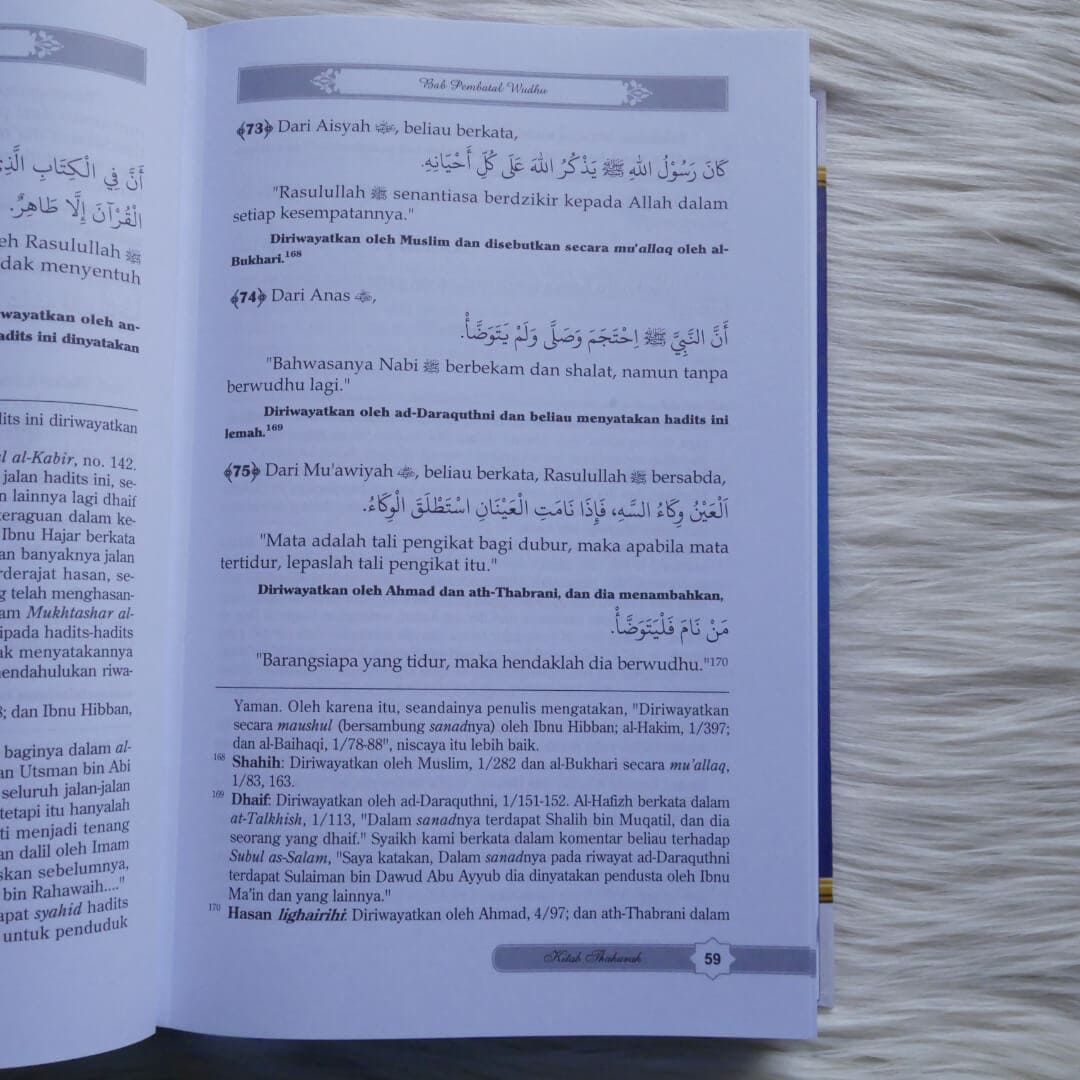 • Setiap hadits dan riwayat telah dilengkapi dengan hukum dan derajat masing-masing; shahih, hasan atau dha’if serta lainnya.