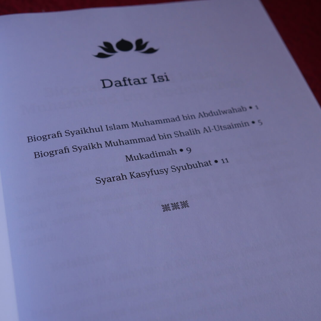 Buku Syarah Kasyfu Syubuhat merupakan uraian buku karangan Syaikhul Islam Muhammad bin abdulwahab, Syarah Kasyfu Syubuhat, memuat berbagai syubhat dengan lugas,ditopang dalil kuat, dan disertai uraian yang mudah diphami serta jelas, sehingga bisa Anda gunakan sebagai senjata untuk membendung serangan syubhat kesyirikan dan pelakunya.