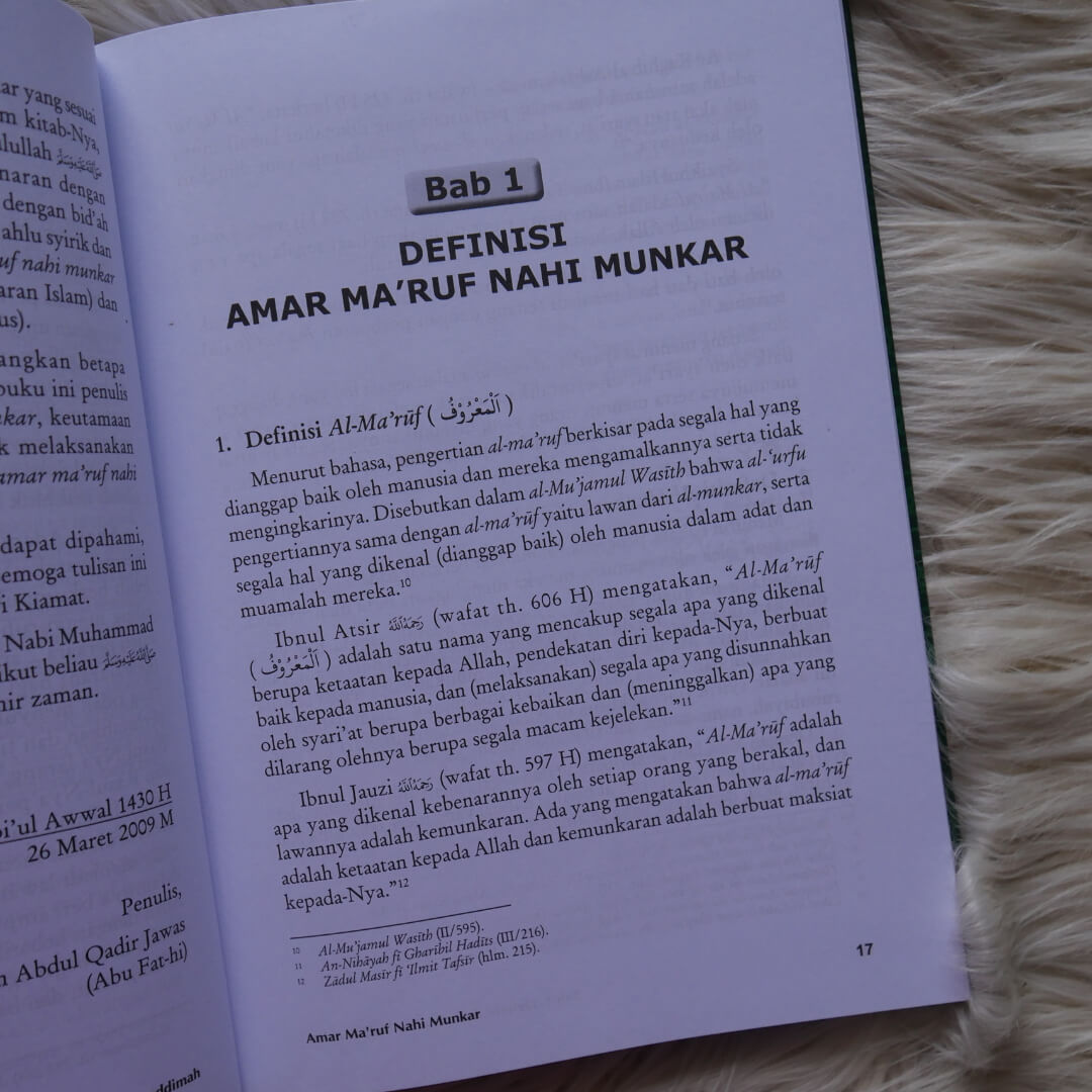 Buku ini “Buku Amar Ma’ruf Nahi Munkar Menurut Ahlus Sunnah Wal Jama’ah” , Buku ini membahas secara detail mengenai perkara Amar Ma’ruf Nahi Munkar. Amar Ma’ruf Nahi Munkar (mengajak atau menyeru kepada kebaikan dan mengingatkan atau mencegah atau melarang dari kejahatan) adalah perkara yang sangat urgen dalam agama Islam dan memiliki maslahat yang sangat besar bagi pribadi dan umat.