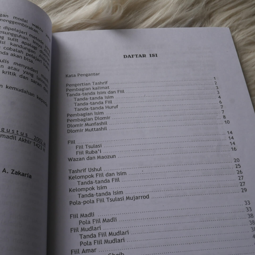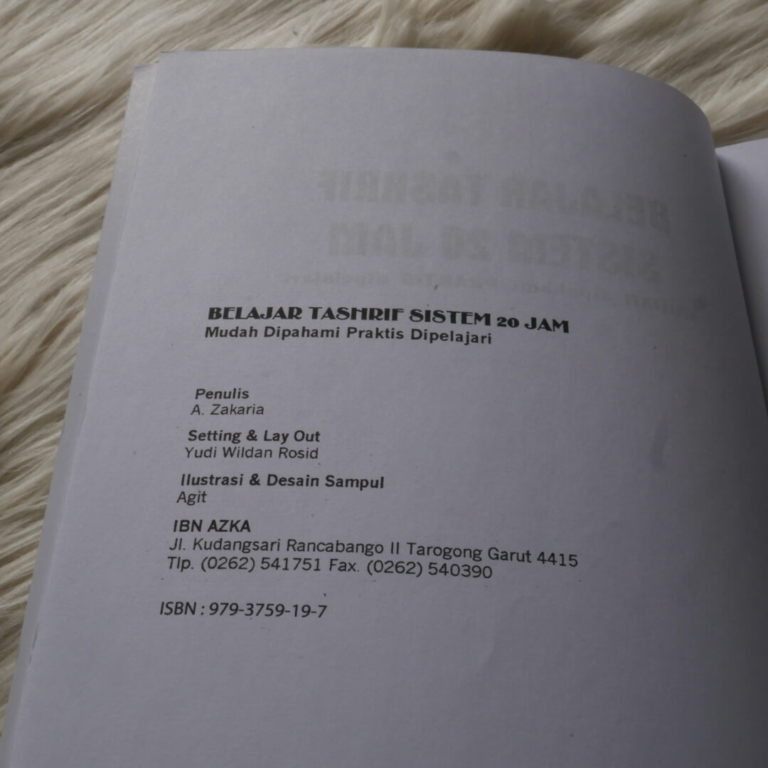 Ini adalah pelajaran shorof khususnya bidang tashrif dalam bahasa indonesia yang ditulis agar lebih mudah dipelajari, bahkan bisa dipelajari sendiri dengan tidak memerlukan waktu yang lama, cukup dengan waktu kurang lebih 20 jam. Penulis buku ini telah mencobanya sendiri dan ternyata bisa berhasil dalam waktu yang singkat.