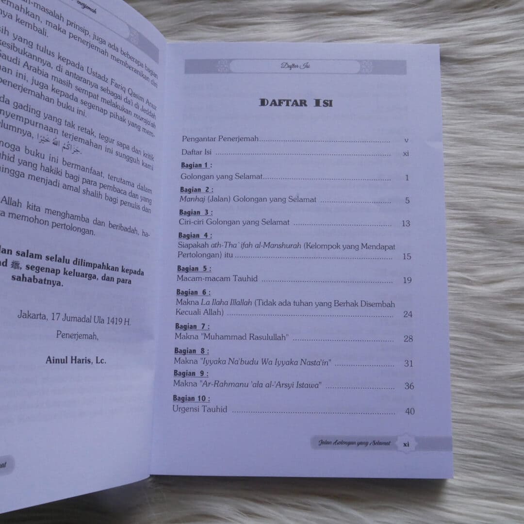 "Buku Jalan Golongan Yang Selamat merupakan terjemah dari kitab Minhajul Firqotin Najiyah yang ditulis oleh Syaikh Muhammad bin Jamil Zainu ini memaparkan penjelasan mengenai bagaimana seorang muslim harus meniti jalan yang benar. Penjelasan dalam buku ini sederhana dan tidak akan membingungkan pembaca.