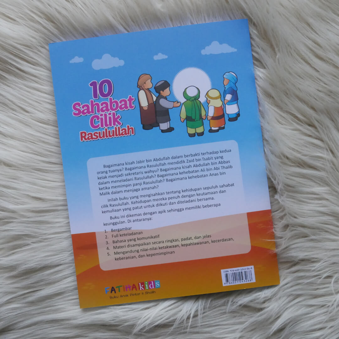 Buku ini berkisah tentang kehidupan Sepuluh Sahabat Cilik Rasulullah. Kehidupan mereka penuh keutamaan dan kemuliaan yang patut untuk diikuti dan diteladani bersama.Banyak metode yang dapat digunakan orangtua dalam memberikan pengajaran kepada anak, salah satunya melalui cerita. Cerita merupakan cara terbaik untuk menanamkan nilai-nilai moral, spiritual, intelektual, dan lain-lain. Selain itu, cerita juga sangat digemari oleh anak-anak dan mempermudah mereka dalam memahami isi yang terkandung di dalamnya.