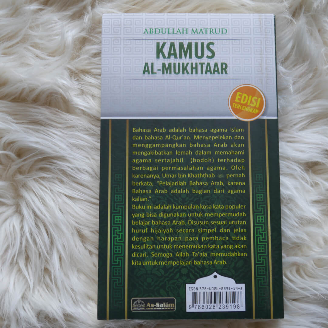 Buku Kamus Al-Mukhtaar 5000 Kosakata Yang Paling Sering Muncul ini adalah kumpulan kosa kata populer yang bisa digunakan untuk mempermudah belajar bahasa Arab. Disusun sesuai urutan huruf hijaiyah secara simpel dan jelas dengan harapan pembaca tidak kesulitan untuk menemukan kata yang akan dicari.