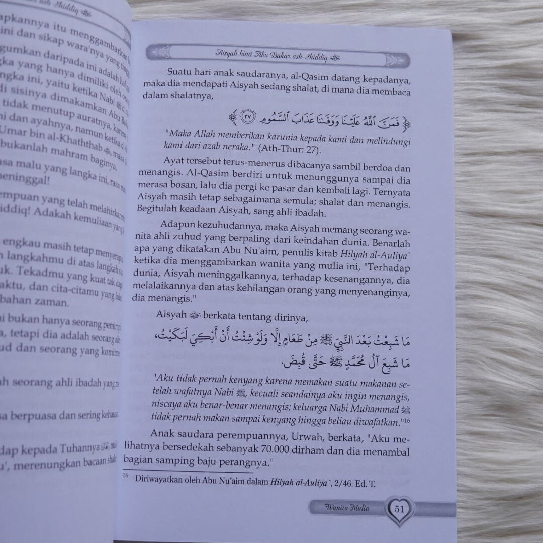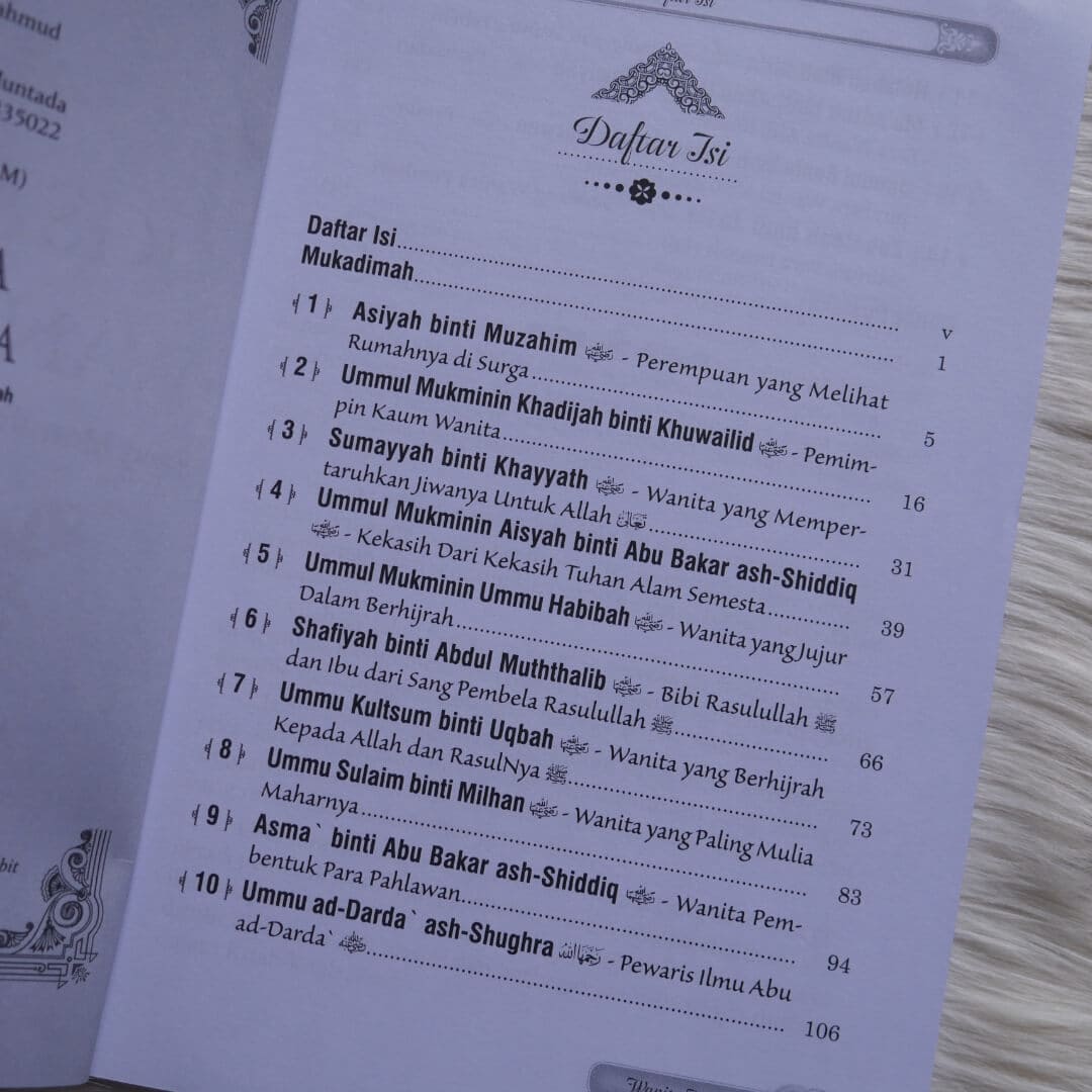 Buku ini menampilkan kisah 14 wanita shalihah yang tangguh dalam membela diennya, terangkum apik dalam untaian kata buku ini. Banyak sekali Ibrah yang dapat kita petik, di antaranya adalah kisah Asiyah binti Muzahim, seorang istri raja yang sangat lalim dan mengaku dirinya sebagai tuhan. Asiyah adalah seorang wanita, tetapi ia tidak menentang Firaun suaminya, dengan kelemahan fisiknya, tapi ia menentangnya dengan kekuatan hatinya yang telah dipenuhi oleh cahaya keimanan sehingga menjadikan Fir’aun sangat lemah di hadapannya. Raja yang lalim telah menimpakan kepada wanita mukminah itu dengan berbagai macam siksaan, kedua tangan dan kakinya dipaku dan di atas punggungnya diletakkan batu besar, seandainya siksaan ini di timpakan kepada seorang laki-laki, maka kita akan mengatakan dia adalah laki-laki yang sabar dan tabah.