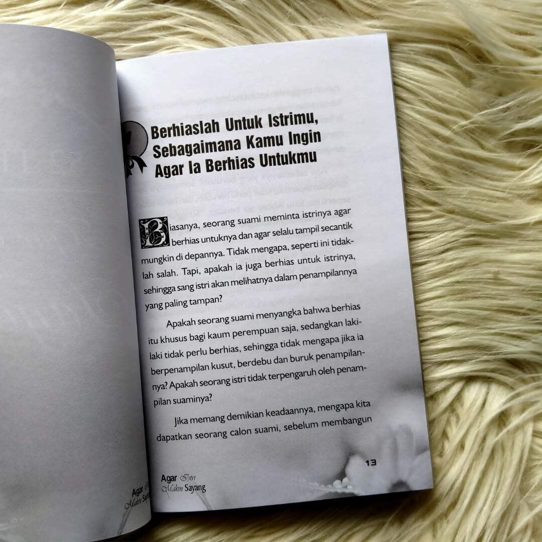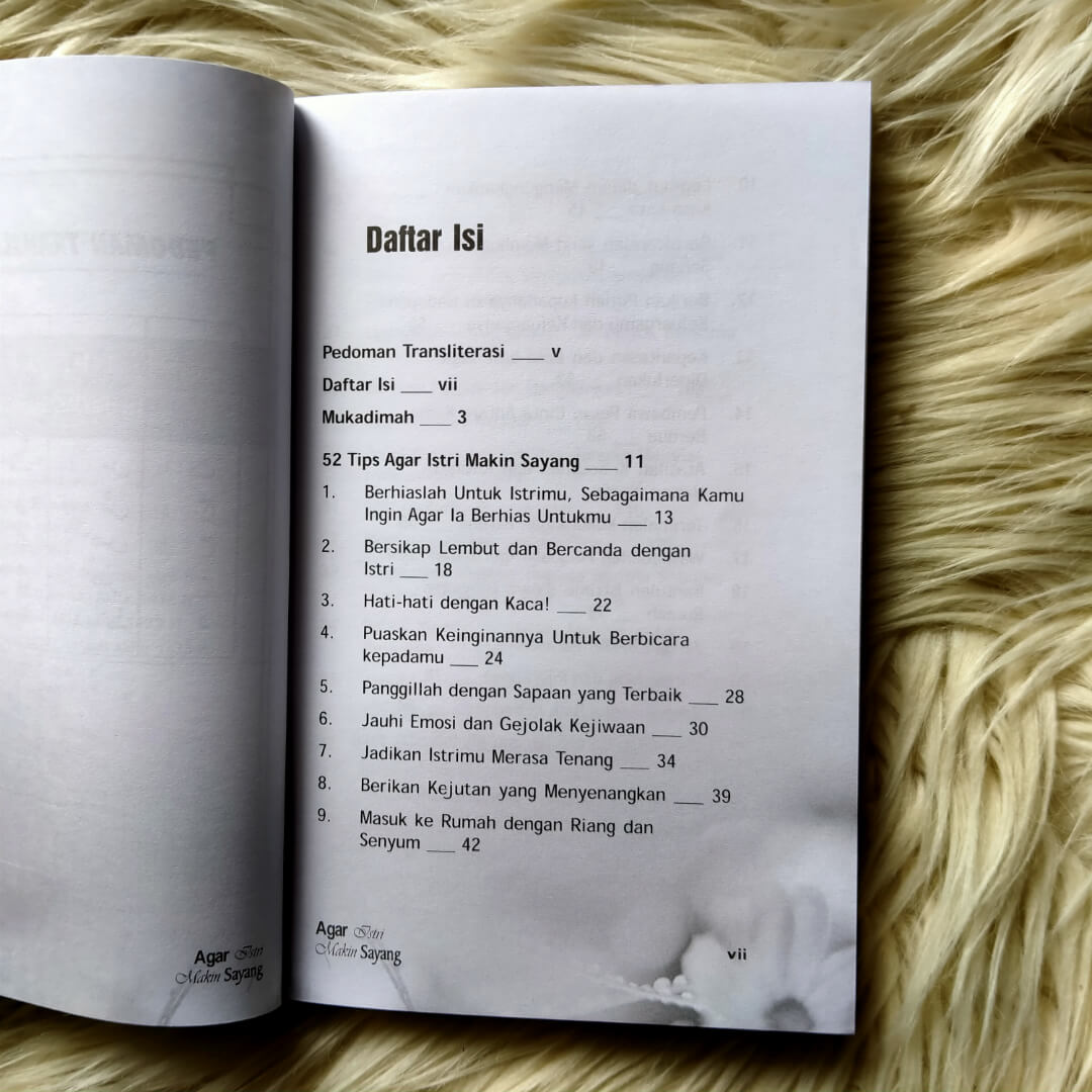 Segala puji hanya milik Allah Rabb semesta alam. Buku Agar Istri Makin Sayang ini akan membimbing kepada para istri bagaimana menjadi istri shalihah dan ditambah dengan tips-tips menarik agar suami tambah cinta dan sayang kepada istri-istrinya, berikut di antara isinya: