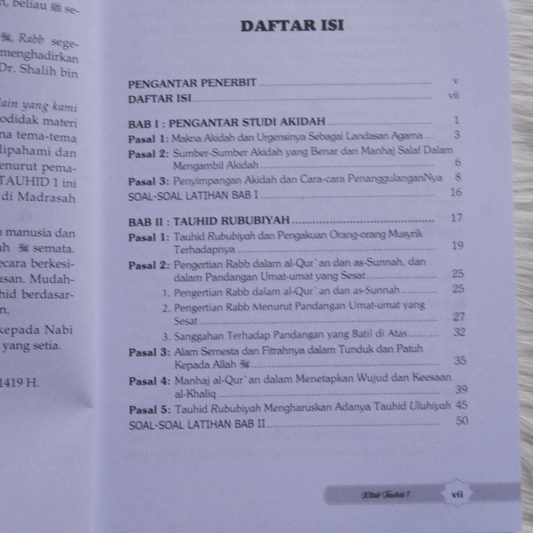 "Buku Kitab Tauhid 3 Jilid ini adalah di antara buku terbaik dan termudah yang menyajikan pembahasan tauhid menurut paham Ahlus Sunnah wal Jama’ah untuk kalangan masyarakat umum. Disajikan dengan bahasa yang ringan dan sederhana namun isinya tetap padat, sistematis dan menyeluruh. Dilengkapi dengan dalil-dalil Al-Qur’an dan Hadits-hadits yang terpercaya, menjadikan para pembaca merasa tenang dalam mempelajarinya. Jadikanlah buku ini sebagai referensi dalam mempelajari ilmu tauhid, khususnya untuk kalangan awam.