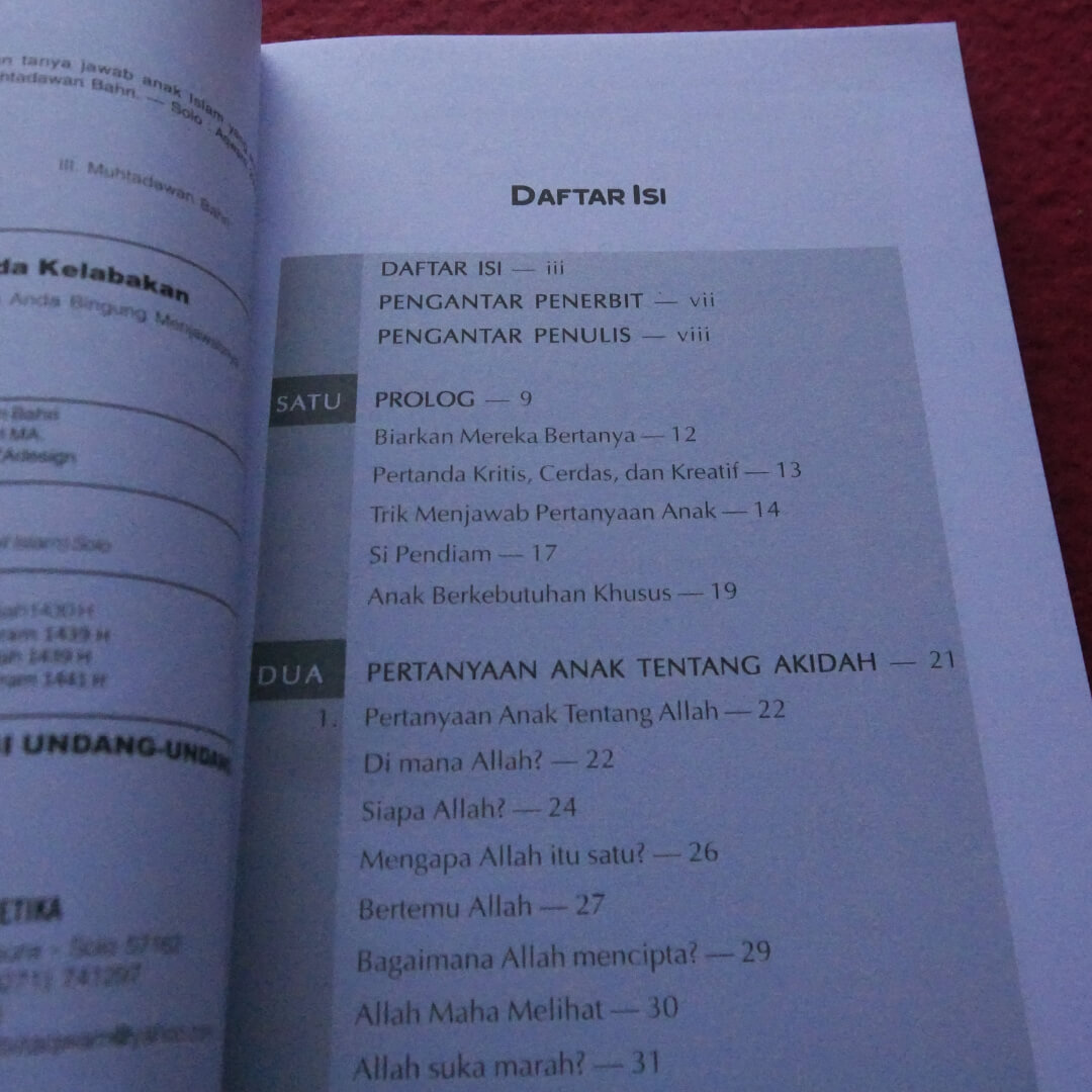 Maka berangkat dari sinilah, kami ingin menyuguhkan beberapa pertanyaan anak yang membuat orang tua kelabakan kepada pembaca. Harapan kami, buku kecil ini dapat menjadi jawab bagi para pembaca tatkala menghadapi buah hatinya.