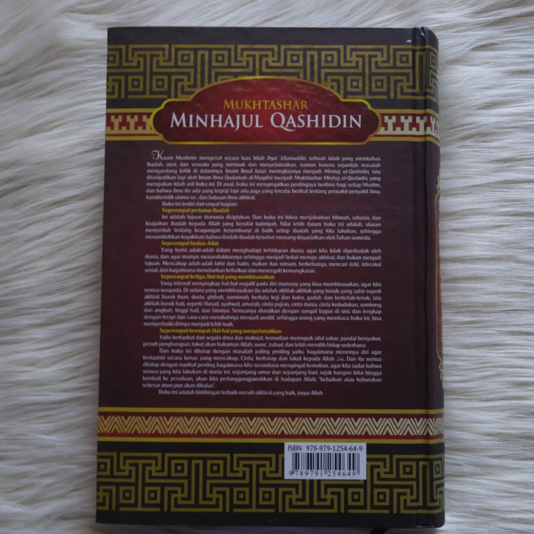 "Buku Mukhtashar Minhajul Qashidin terjemahan ini adalah karya Ibnu Qudamah Al-Maqdisi, yang merupakan ringkasan dari kitab MinhajAl-Qashidin karya Ibnul Jauzi, yang juga merupakan ringkasan kitab Ihya’Ulumuddin karya Imam Al-Ghazali. Buku sarat makna ini memaparkan penjelasan tentang akhlak yang mesti dipelajari, diketahui, dan diterapkan oleh orang yangmenuntut ilmu agar menjadi tuntunan dalam kehidupannya, serta tuntunan dalam semua urusannya.
