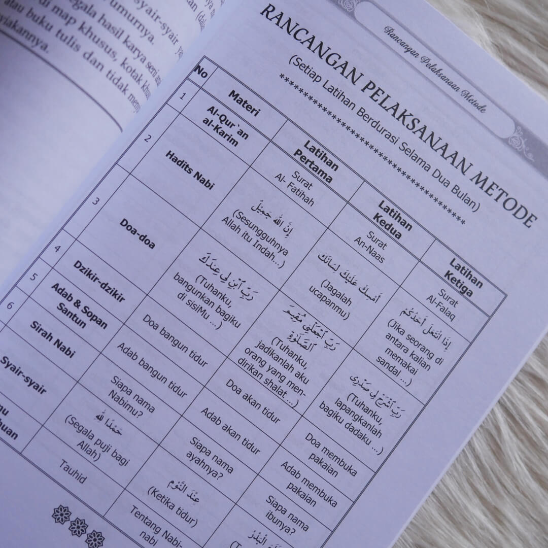"Buku Panduan Mendidik Anak Muslim Usia Pra Sekolah di tangan anda ini memaparkan cara mendidika anak usia pra sekolah dengan metode pendidikan islami yang bersumber dari AlQur’an dan contoh Rasulullah Shalallahu ‘alaihi wa Sallam. Karya ini merupakan hasil pengalaman lebih dari 30 rekan pendidik, yang telah dipraktekkan dalam pendidikan murid-murid dan anak-anak mereka.