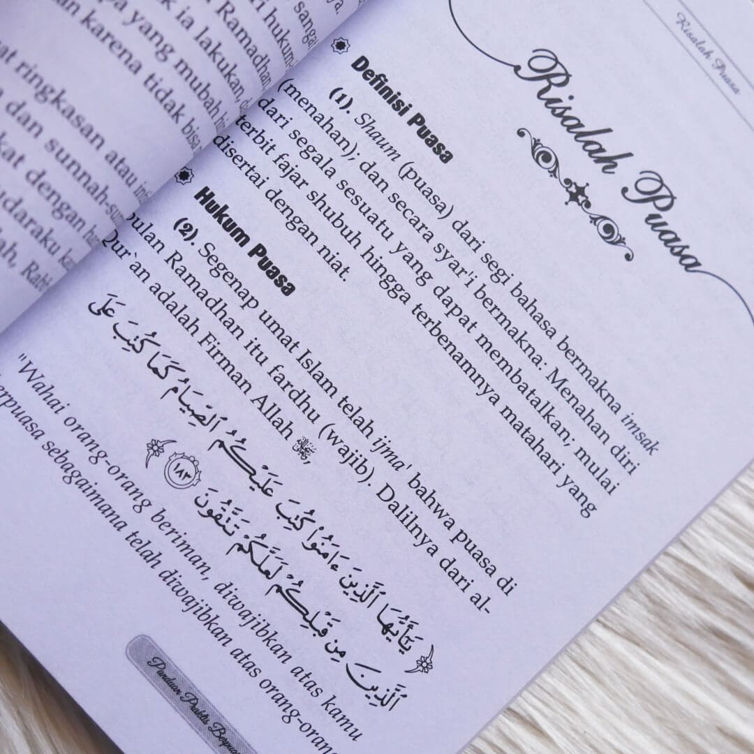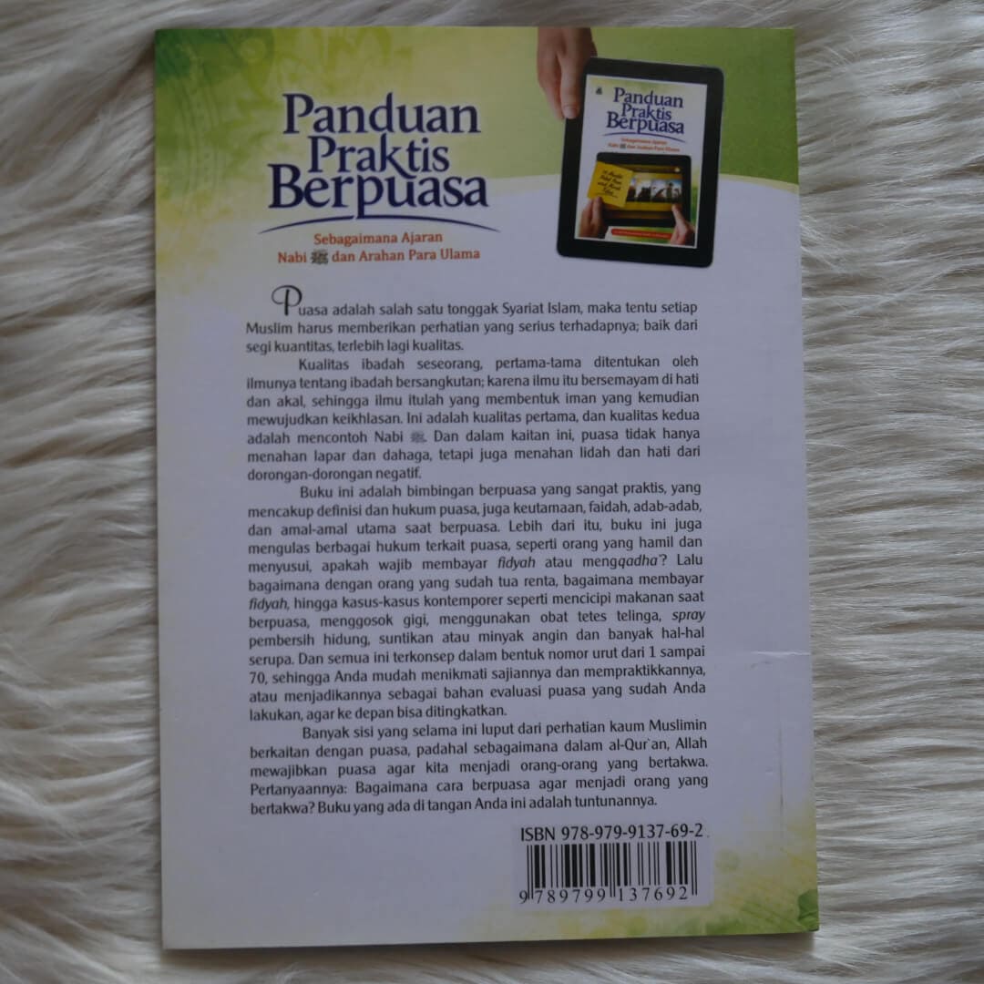 "Buku Panduan Praktis Berpuasa yang mungil ini menyajikan penjelasan yang cukup padat mengenai seluk beluk puasa. Diantaranya menjelaskan definisi dan hukum puasa, keutamaan puasa, adab-adab di dalam berpuasa dan macam-macam amal shalih saat puasa, serta berbagai hukum terkait ibadah puasa. Semua pembahasannya diambil dari AlQur’an dan Sunnah Nabi Shalallahu ‘alaihi wa Sallam, dengan arahan para ulama yang berkompeten dalam bidang fiqih.