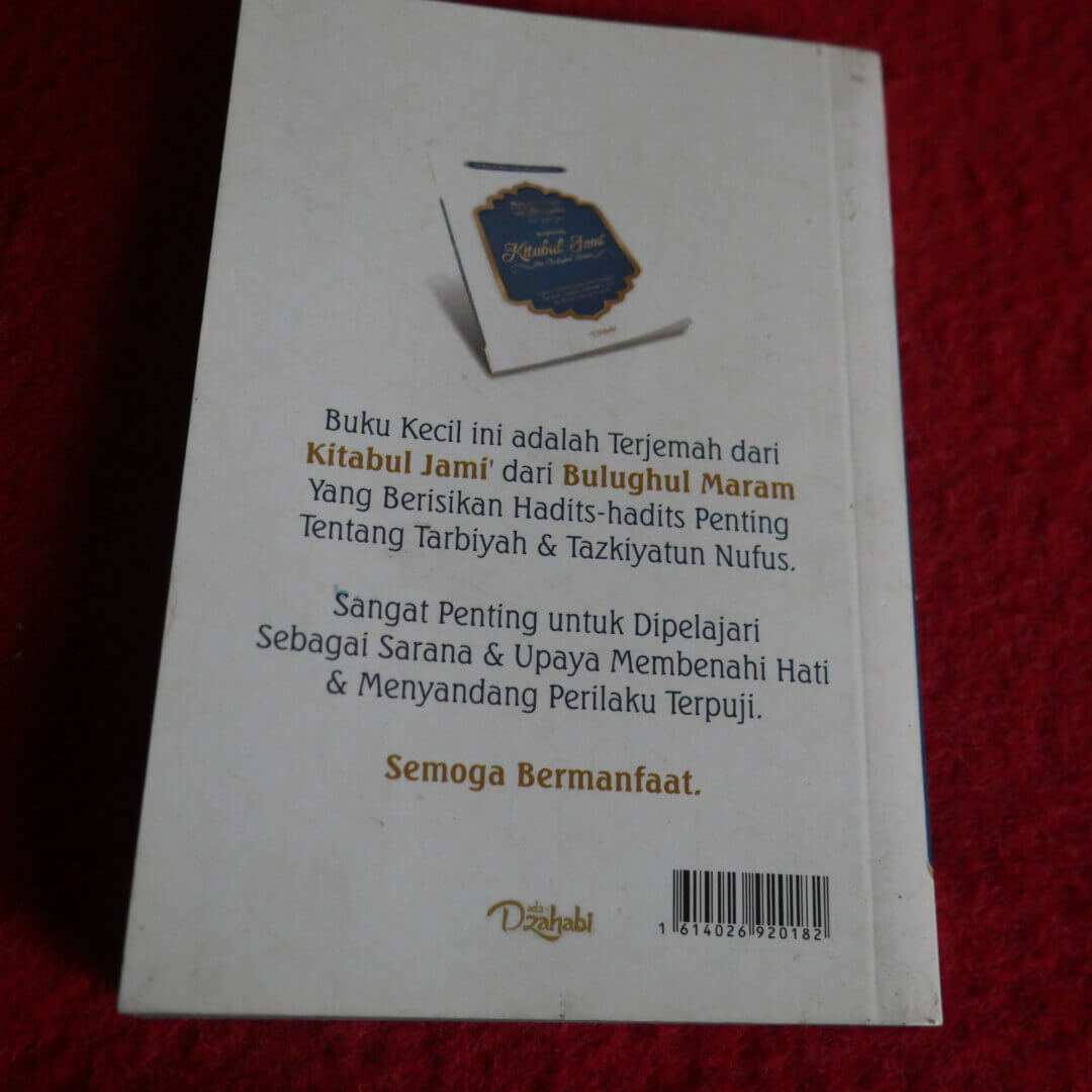 Buku ini “Buku Saku Terjemah Kitabul Jami Dari Bulughul Maram” , Buku ini menghimpun hadits-hadits yang tidak hanya dalam masalah fikih ibadah, tetapi juga muamalah dan adab-adab yang sangat perlu dipelajari oleh setiap muslim.