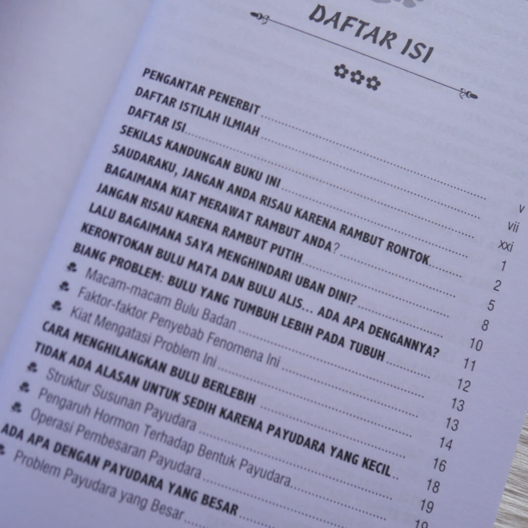 Maka untuk mengatasi permasalahan kompleks tersebut, perlu terapi kecantikan dan kesehatan lahir dan batin yang tepat dan aplikatif, yang pembahasannya diuraikan dalam buku Rahasia Kecantikan & Kesehatan Wanita dari A-Z ini.