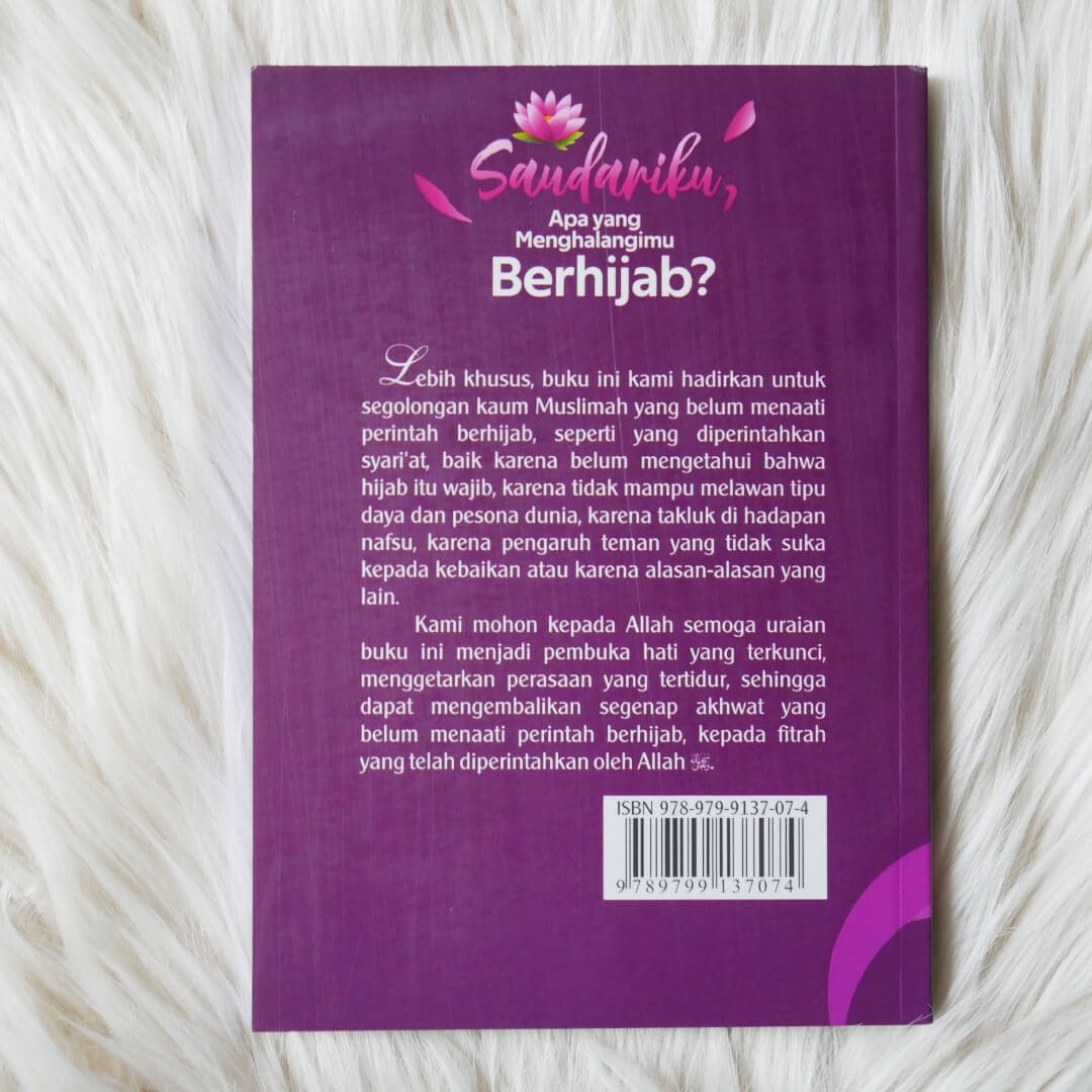"Buku Saudariku Apa Yang Menghalangimu Berhijab ini kami hadirkan untuk segolongan kaum muslimah yang belum mentaati perintah berhijab, seperti yang diperintahkan syari’at. Baik karena belum mengetahui bahwa hijab itu wajib, karena tidak mampu melawan tipu daya dan pesona dunia, karena takluk di hadapan nafsu, karena pengaruh teman yang tidak suka kepada kebaikan atau karena alasan-alasan yang lain.