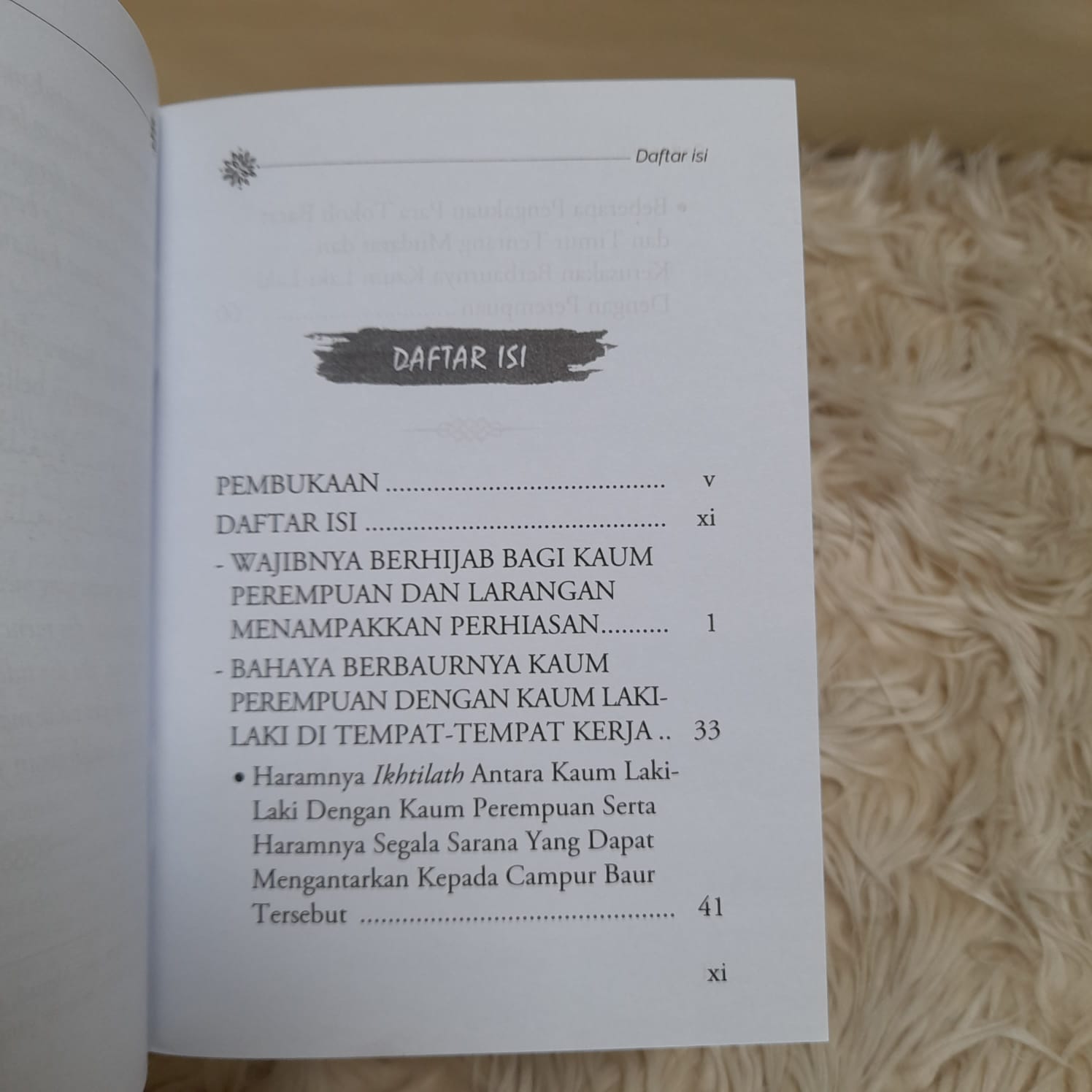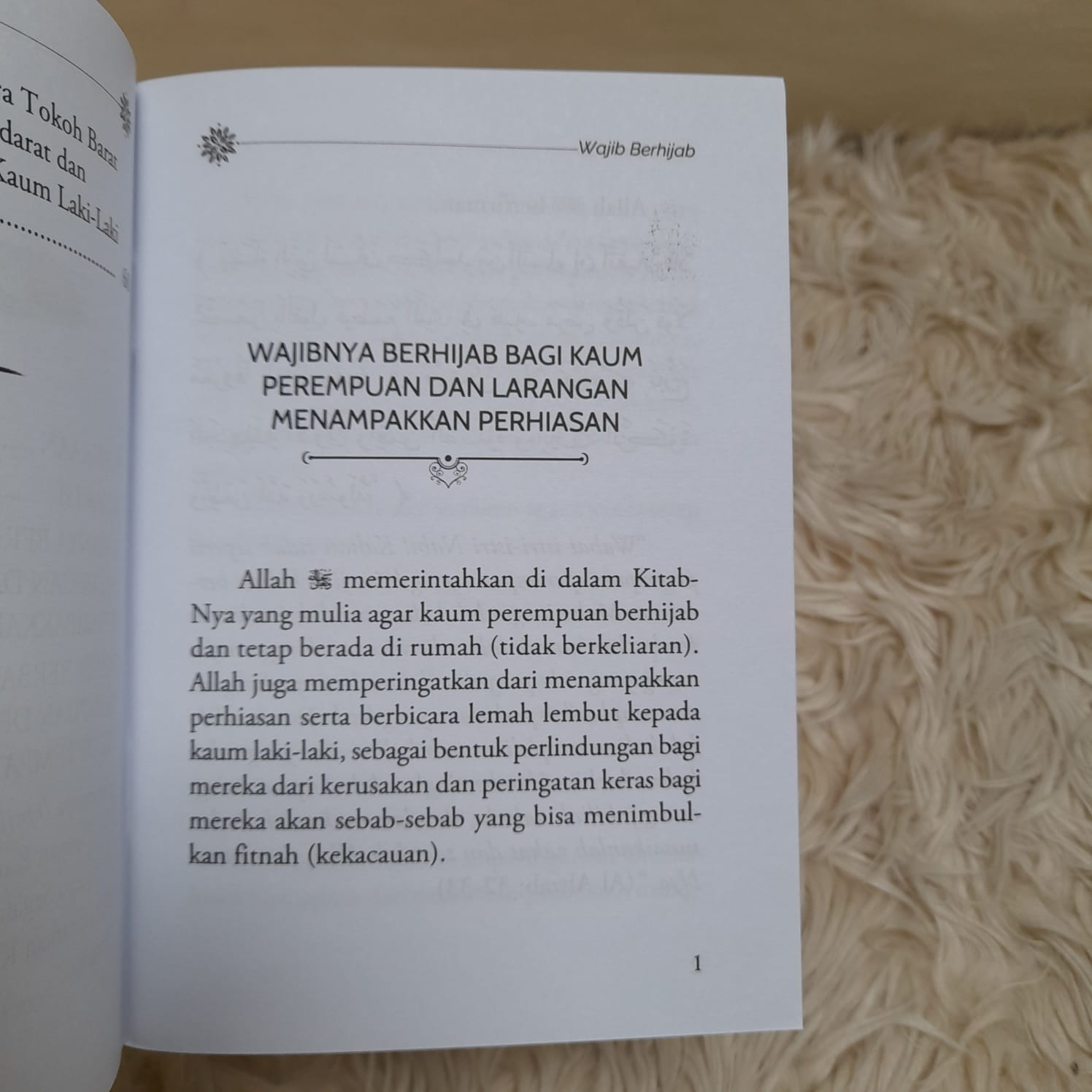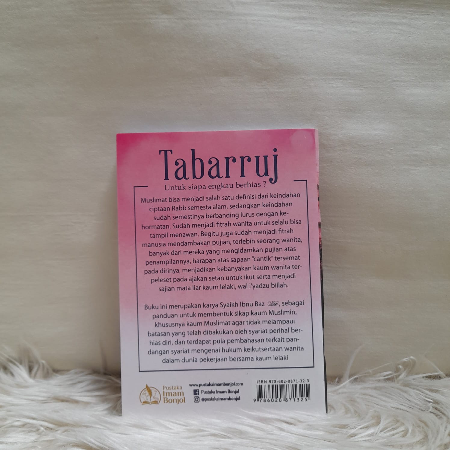 Buku ini merupakan karya Syaikh Ibnu Baz, sebagai panduan untuk membentuk sikap kaum Muslimin, khususnya kaum Muslimat agar tidak melampaui batasan yang telah dibakukan oleh syariat perihal berhias diri, dan terdapat pula pembahasan terkait pandangan syariat mengenai hukum keikutsertaan wanita dalam dunia pekerjaan bersama kaum lelaki.