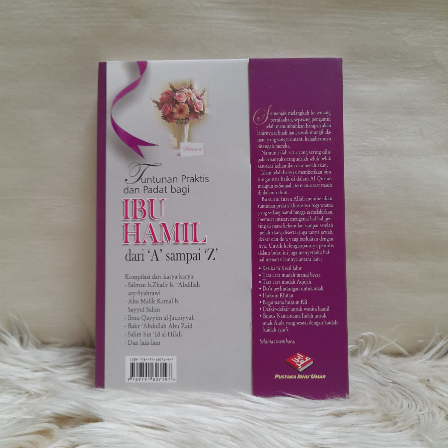 "Buku Tuntunan Praktis Ibu Hamil A-Z ini Insya Allah memberikan tuntunan praktis yang lengkap, khususnya bagi wanita yang sedang hamil hingga ia melahirkan. Isinya memuat intisari mengenai hal-hal penting sejak masa kehamilan sampai dengan setelah melahirkan, juga disertai dengan tanya jawab, do’a dan dzikir yang berkaitan dengannya. Untuk kelengkapannya kami sertakan pula tuntunan ‘aqiqah sampai dengan khitan, dan juga permasalahan lainnya. Sebagai bonus kami sertakan nama-nama indah untuk anak Anda tersayang, yang sesuai dengan kaidah syar’i.