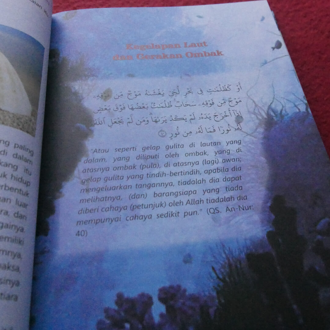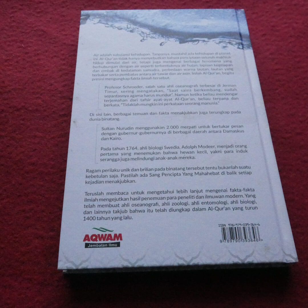 "Buku Mukjizat Ilmiah di Lautan & Dunia Binatang ini menjelaskan berbagai mukjizat yang sangat luar biasa tentang lautan dan dunia binatang. Seperti yang kita tahu, air adalah substansi kehidupan. Tanpanya, mustahil ada kehidupan di planet ini. Al-Qur’an tidak hanya menyebutkan bahwa penciptaan seluruh makhluk hidup dimulai dari air, tetapi juga mengenai berbagai fenomena yang berhubungan dengan air seperti terbentuknya air hujan, lapisan kegelapan dan ombak di kedalaman samudra, perbedaan warna lautan, lautan yang terbakar serta pembatas air tawar dan air asin. Inilah Al-Qur’an, begitu presisi mengungkap fakta ilmiah tersebut.