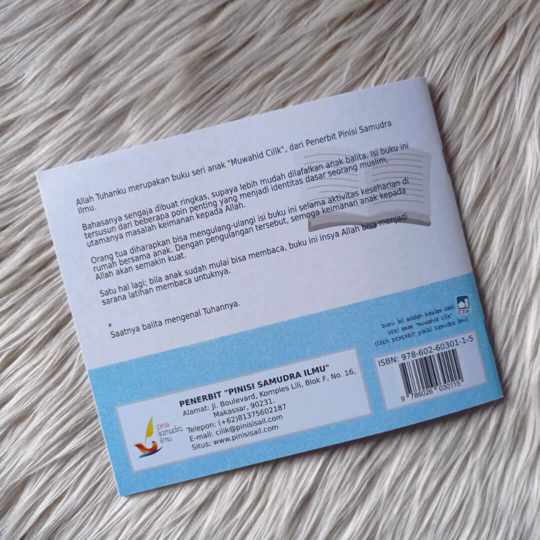 Buku ini lebih dikhususkan untuk anak-anak balita yang baru belajar bicara dan sangat ingin tahu segala sesuatu, dalam buku ini anak akan diajak mengenal Allah, Rabbnya, mengenal jati dirinya sebagai orang islam dan mengenal perbuatan apa saja yang bisa membuat seorang muslim dicintai oleh Allah.