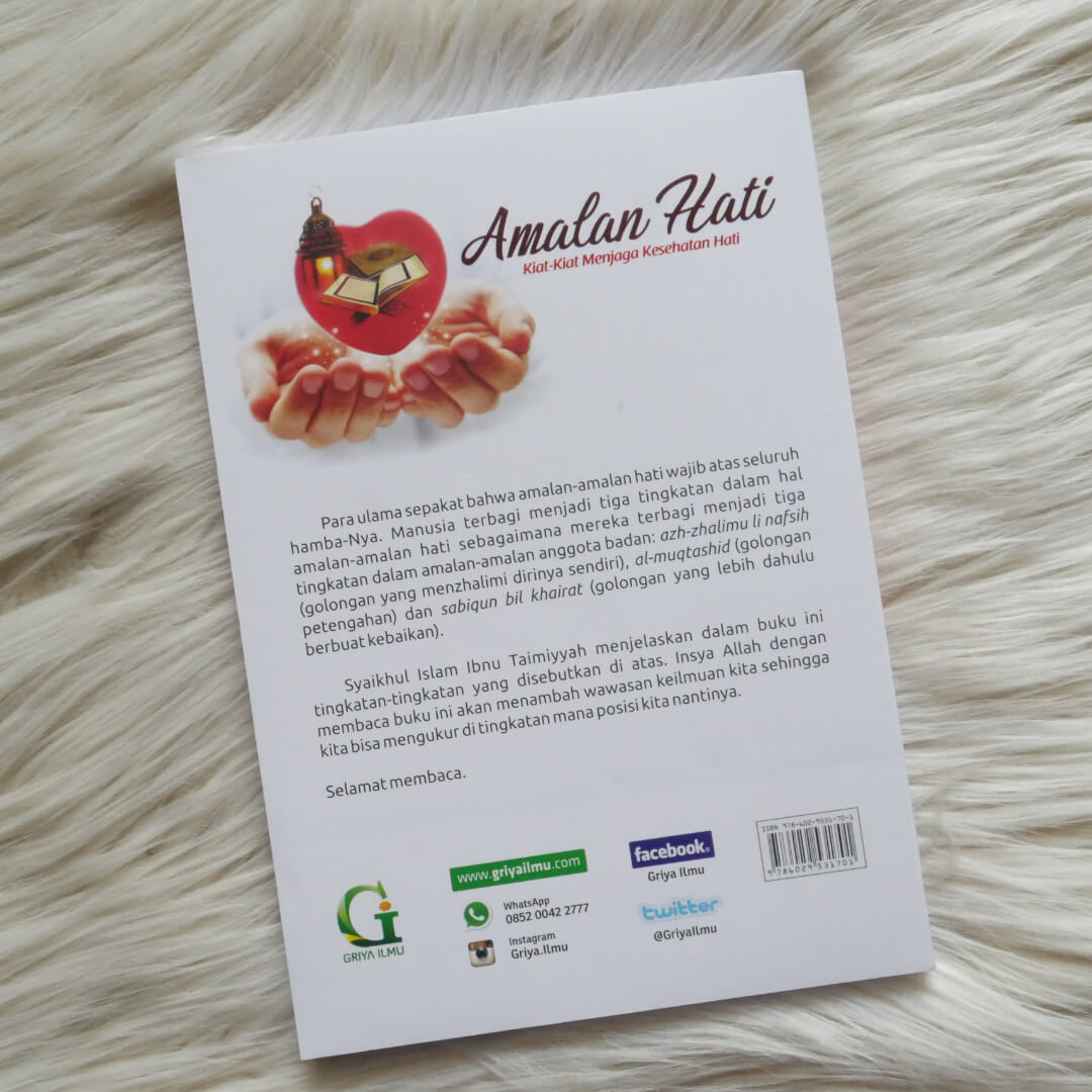 Buku ini “Buku Amalan Hati Kiat-Kiat Menjaga Kesehatan Hati ” , Buku ini membahas secara ringkas tentang amalan-amalan hati. Seperti mencintai Allah dan Rasul-Nya, tawakal kepada Allah, mengikhlaskan agama (amal) hanya kepada Allah, bersyukur kepada-Nya, bersabar atas ketetapan-Nya, takut kepada-Nya, berharap kepada-Nya, dan hal lain yang mengikutinya. Semua itu menuntut orang-orang beriman untuk melaksanakan hak-Nya yang telah Allah wajibkan dan tetapkan atas mereka.