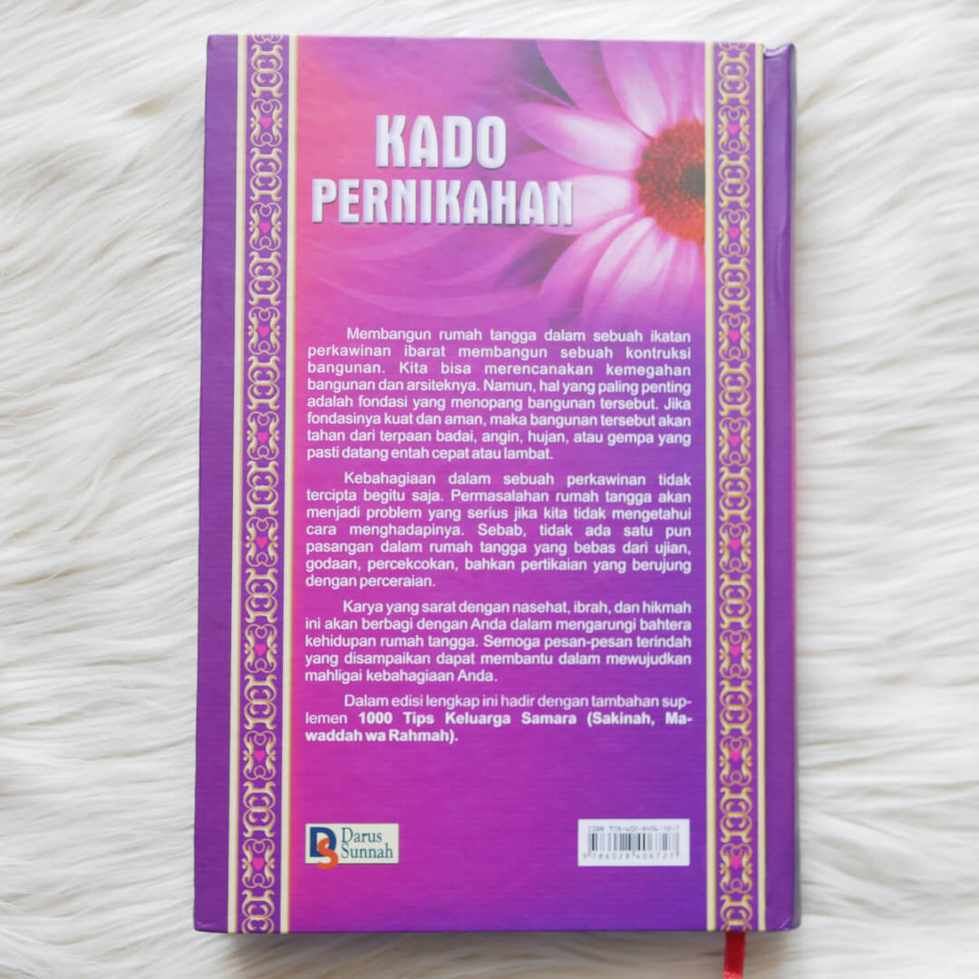 "Buku Kado Pernikahan Darus Sunnah ini menguraikan nasehat-nasehat menggapai kehidupan rumah tangga yang bahagia. Itulah rumah tangganya Nabi Shalallahu ‘alaihi wa Sallam yang dipenuhi ketaatan kepada Allah dan saling menasehati dalam kebenaran. Buku yang cantik ini disajikan secara menarik, sistematis dan ilmiah berdasarkan dalil-dalil dari Al-Qur’an dan Sunnah Rasulullah Shalallahu ‘alaihi wa Sallam. Dilengkapi pula pembahasan tambahan yaitu 1000 Tips Keluarga Samara (Sakinah, Mawaddah wa Rahmah). Buku yang tidak selayaknya dilewatkan pembahasannya terutama bagi Anda yang mengharapkan kebahagiaan dalam rumah tangga Anda.